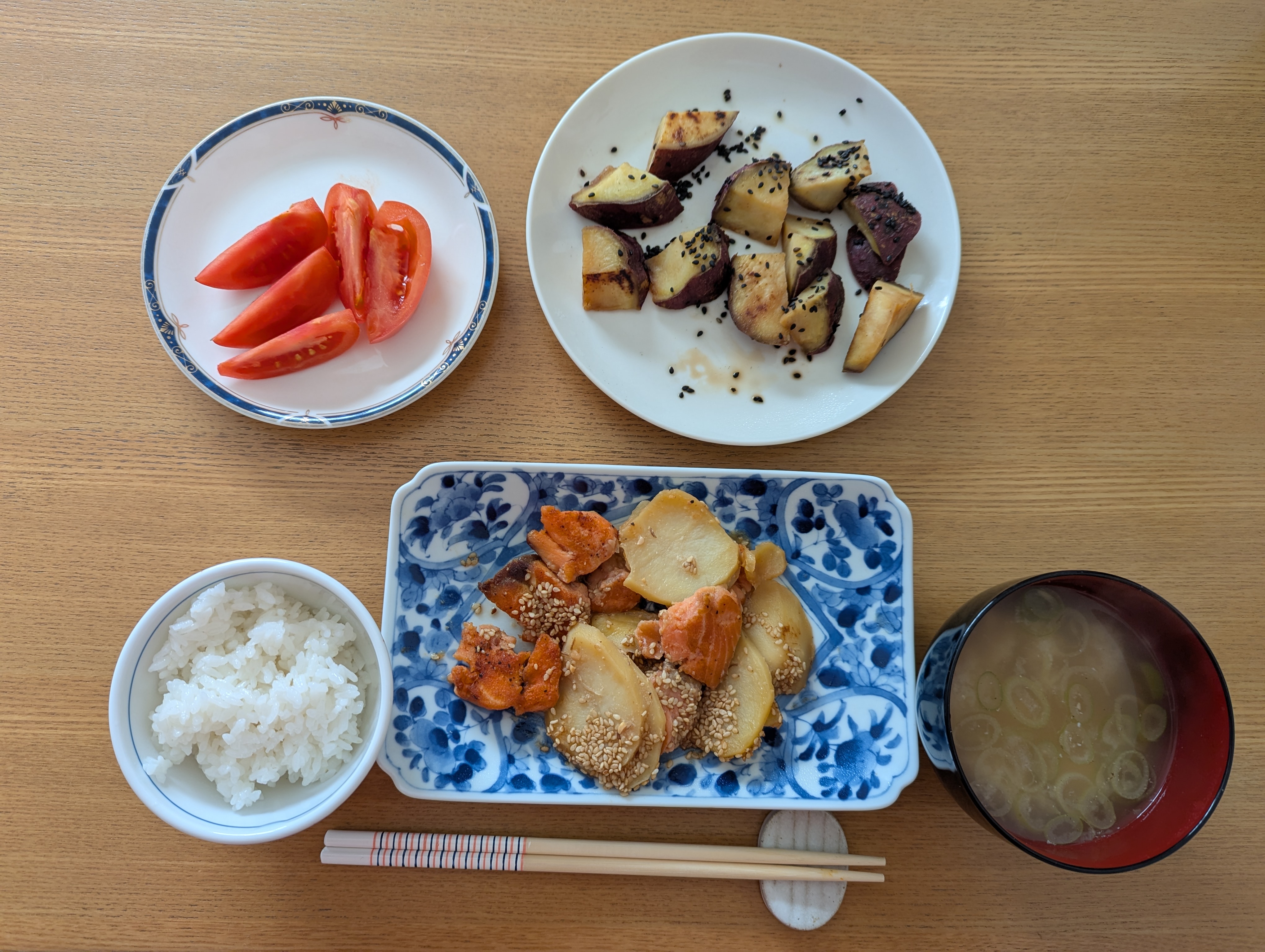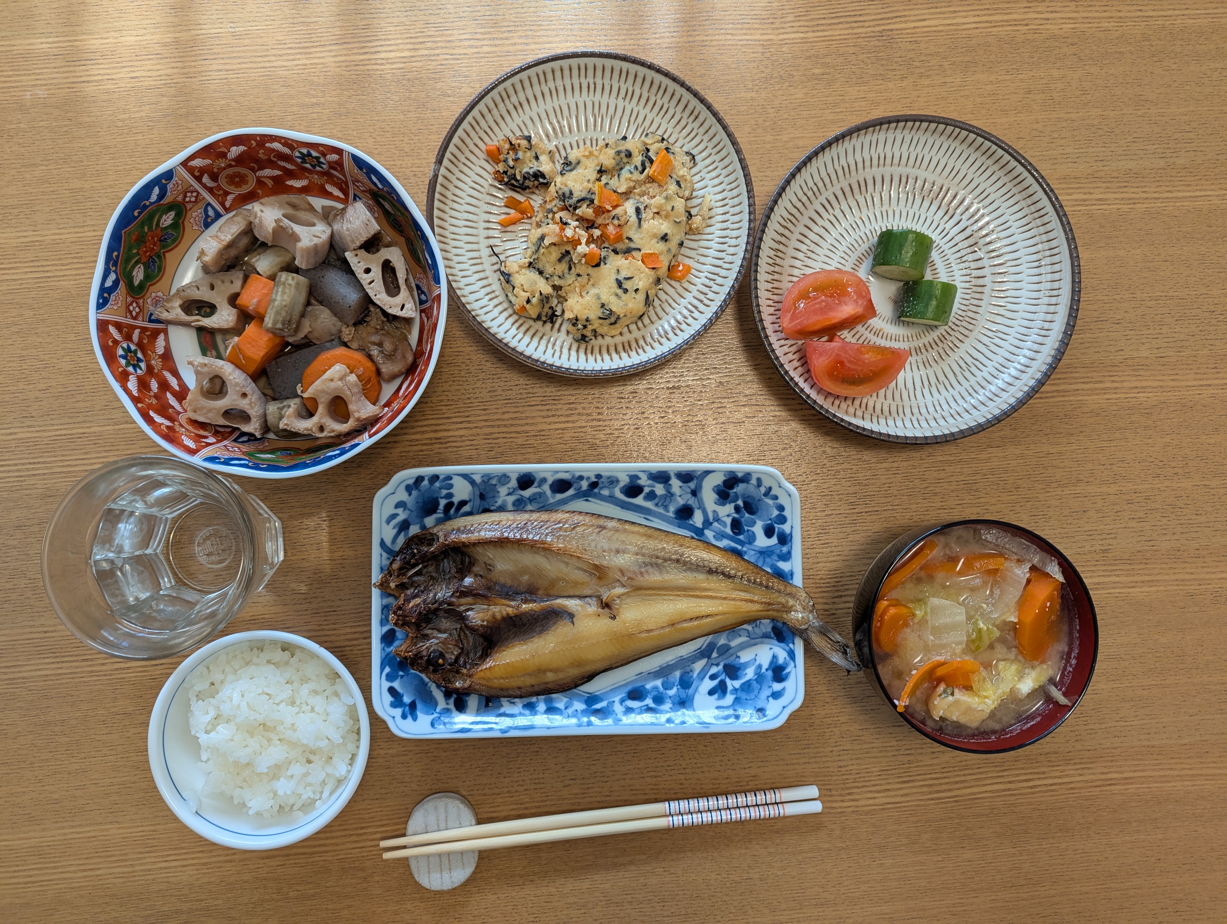冷凍してあった干物と昨日の残りの鶏つくねと一昨日の筑前煮と今朝のトマト、きゅうりと味噌汁。今日も大地の恵みに、そして関わった全ての方々に、ありがとう、ありがとう、ありがとう。良かったら見てってくださいね♪