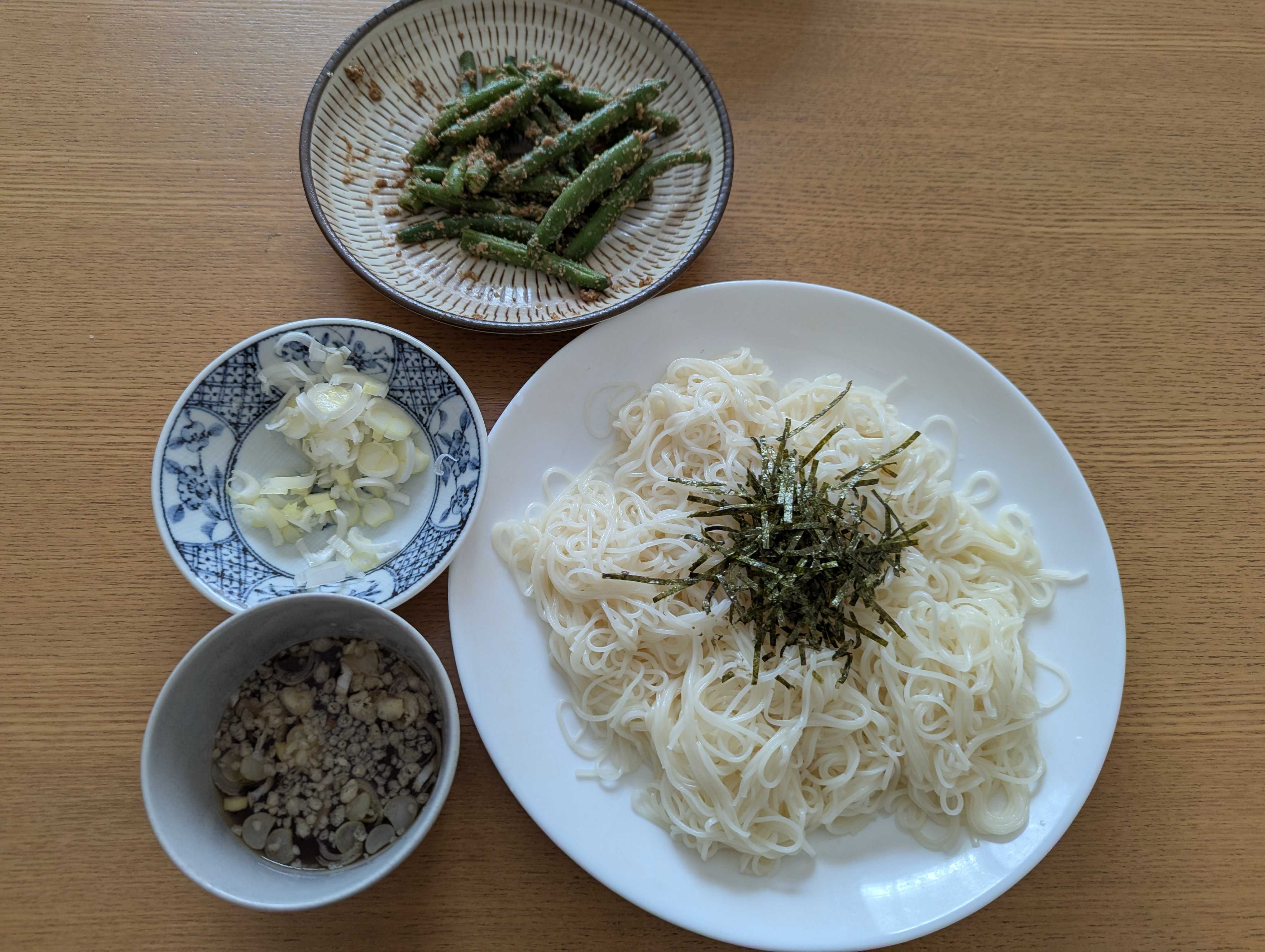 今日のランチはそうめん。そうめん論争があるみたいですが私はわりと天ぷらはつけません。あえていうなら昨日の残りのインゲンの胡麻和え添え。良かったら見てってくださいね♪