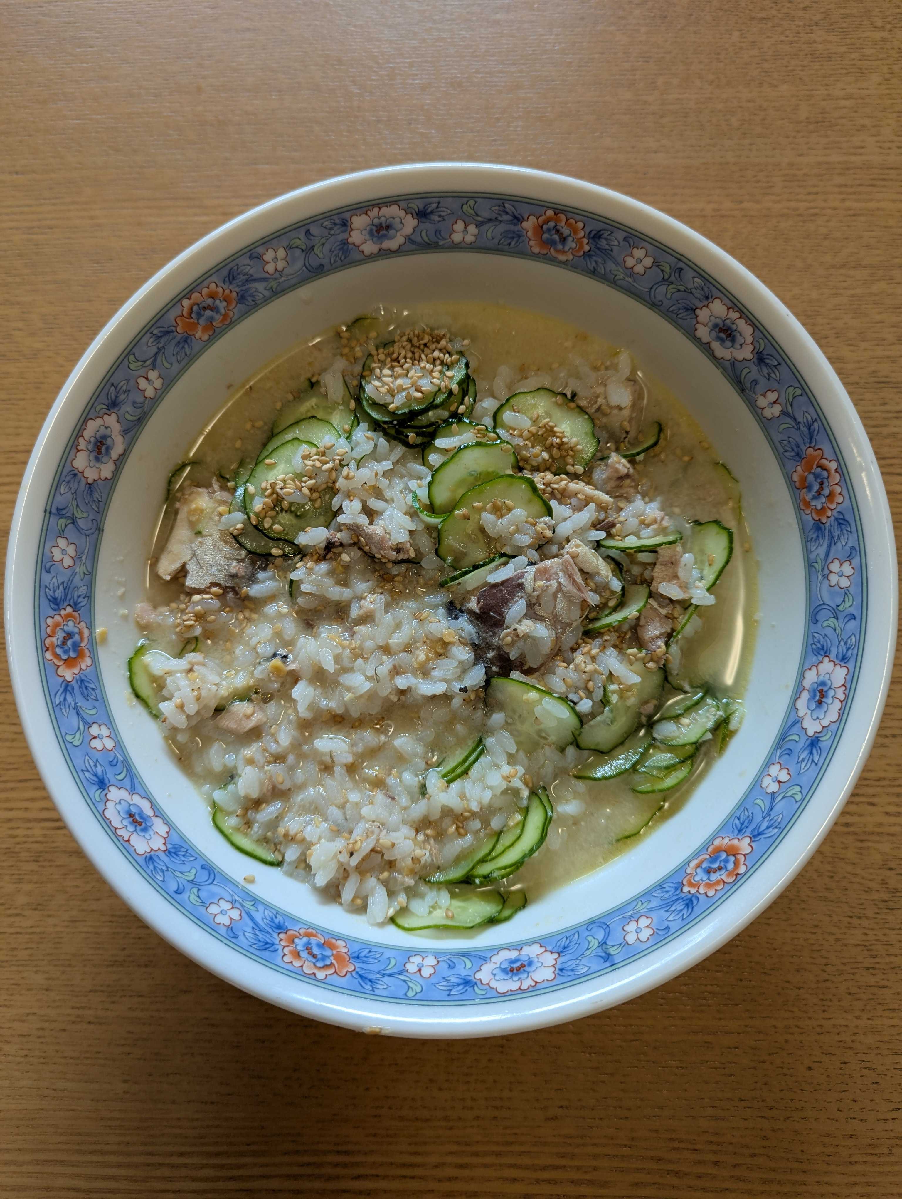 今日はちょっとだけ暑いので、今日のランチは冷や汁。サバ缶ときゅうりスライスとほんだしと味噌だけ。良かったら見てってくださいね♪