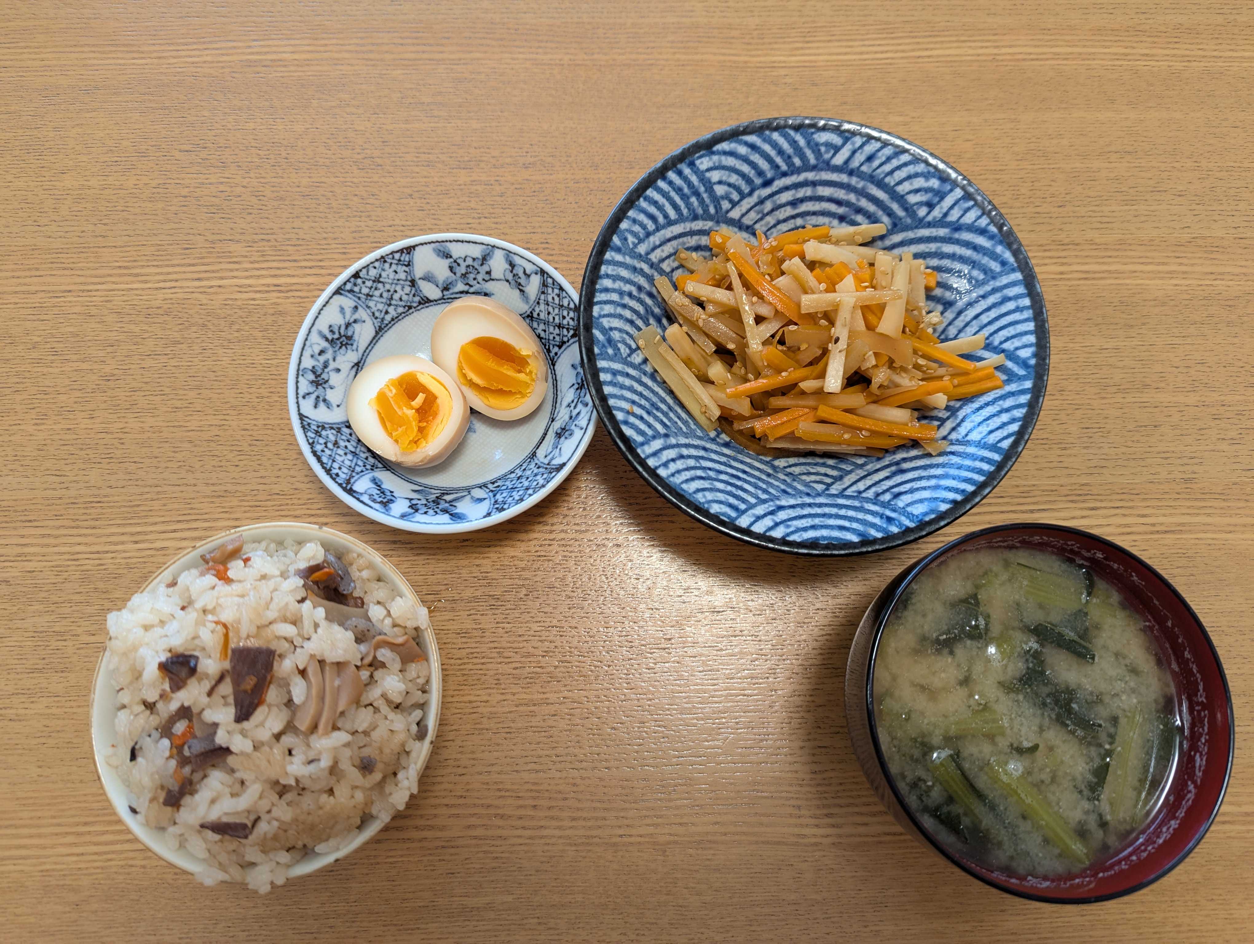 今日のランチは昨日の残りの市販のキノコの炊き込みご飯、小松菜とさつま揚げの味噌汁、大根の皮と人参のきんぴら、味玉。味玉のタレが少なくて済む味玉ケース欲しいなあ〜。良かったら見てってくださいね♪