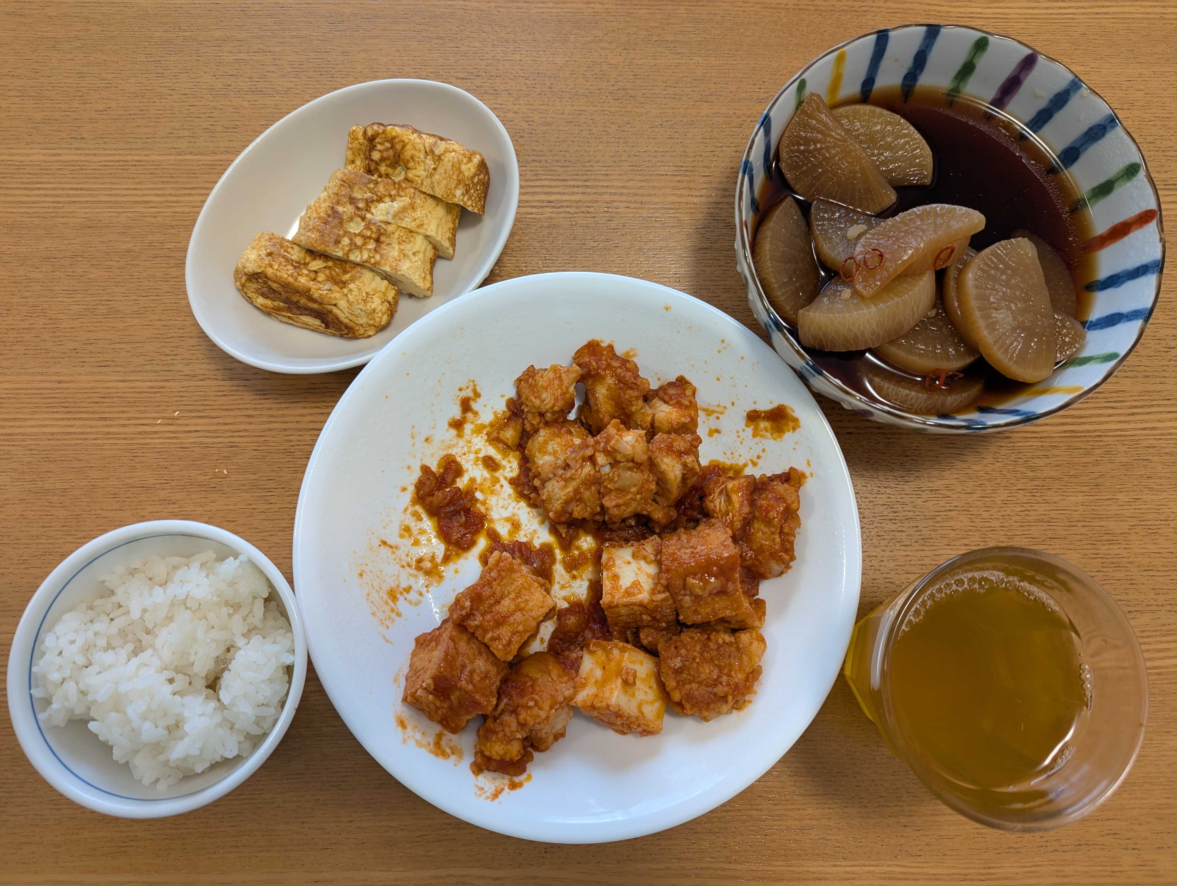 今日のランチは朝の弁当の残りだし巻き卵、りなてぃさんの本1より大根の煮物、りなてぃさんの本2よりヤンニョムチキン(いずれも昨日の夕飯の残り)ヤンニョムチキンは、鶏むね1枚の所3枚で作ったら、今日の夕飯にもなる程余っちゃった!分量難しいね〜!!良かったら見てってくださいね♪