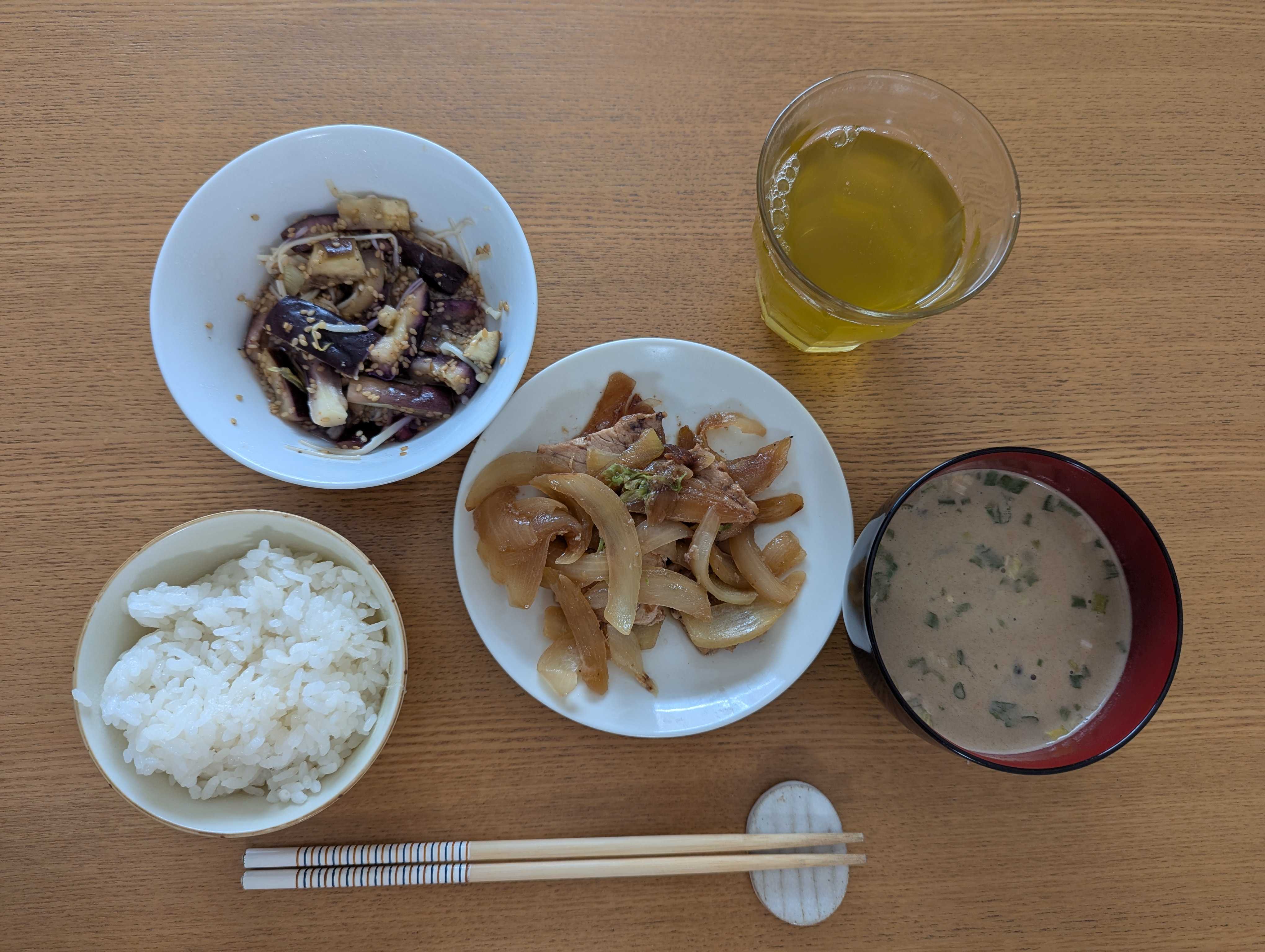 今日のランチは昨日の残りのナスとエノキのポン酢和え、メカジキの生姜焼き、インスタント味噌汁、ご飯。良かったら見てってくださいね♪