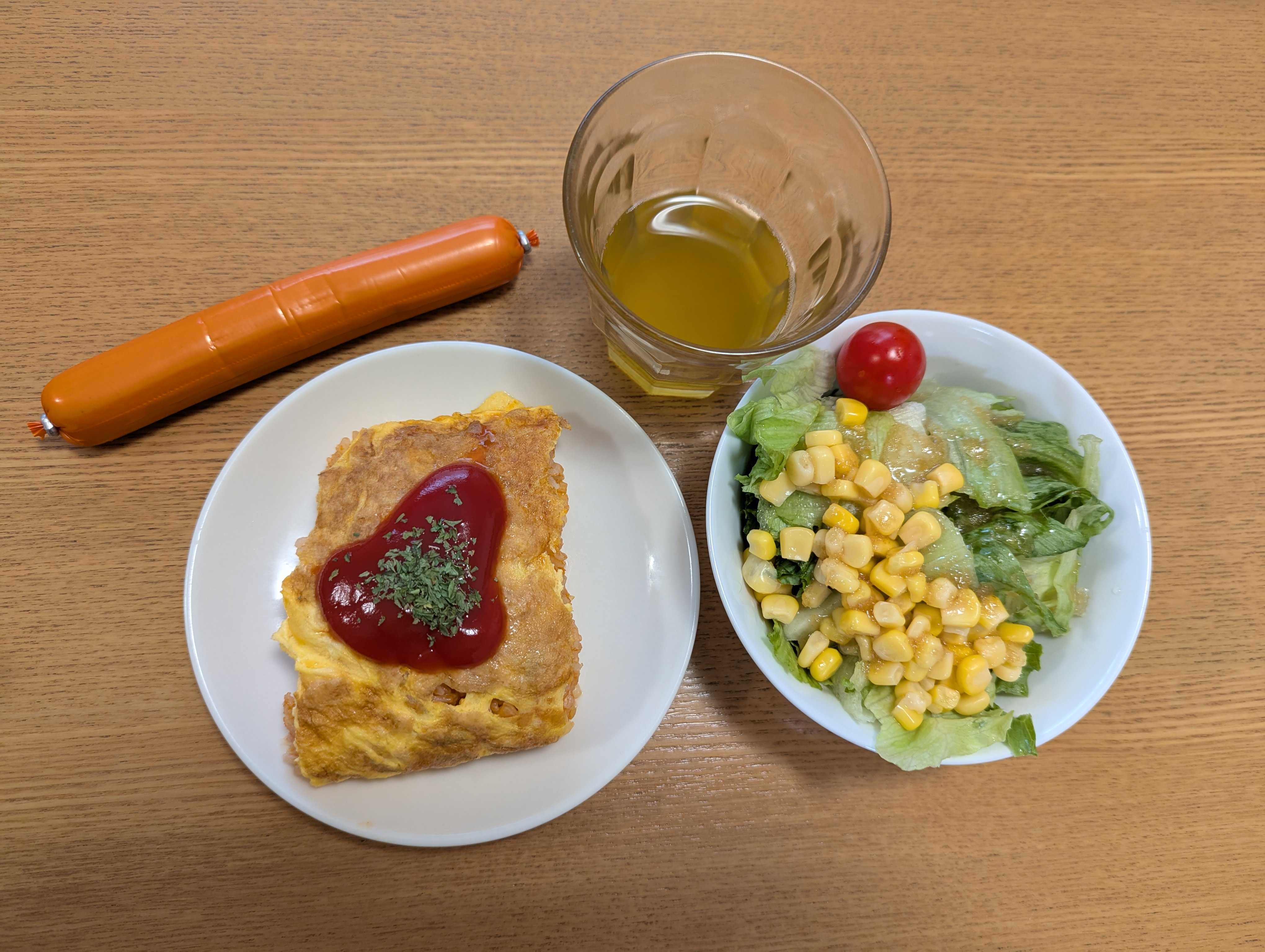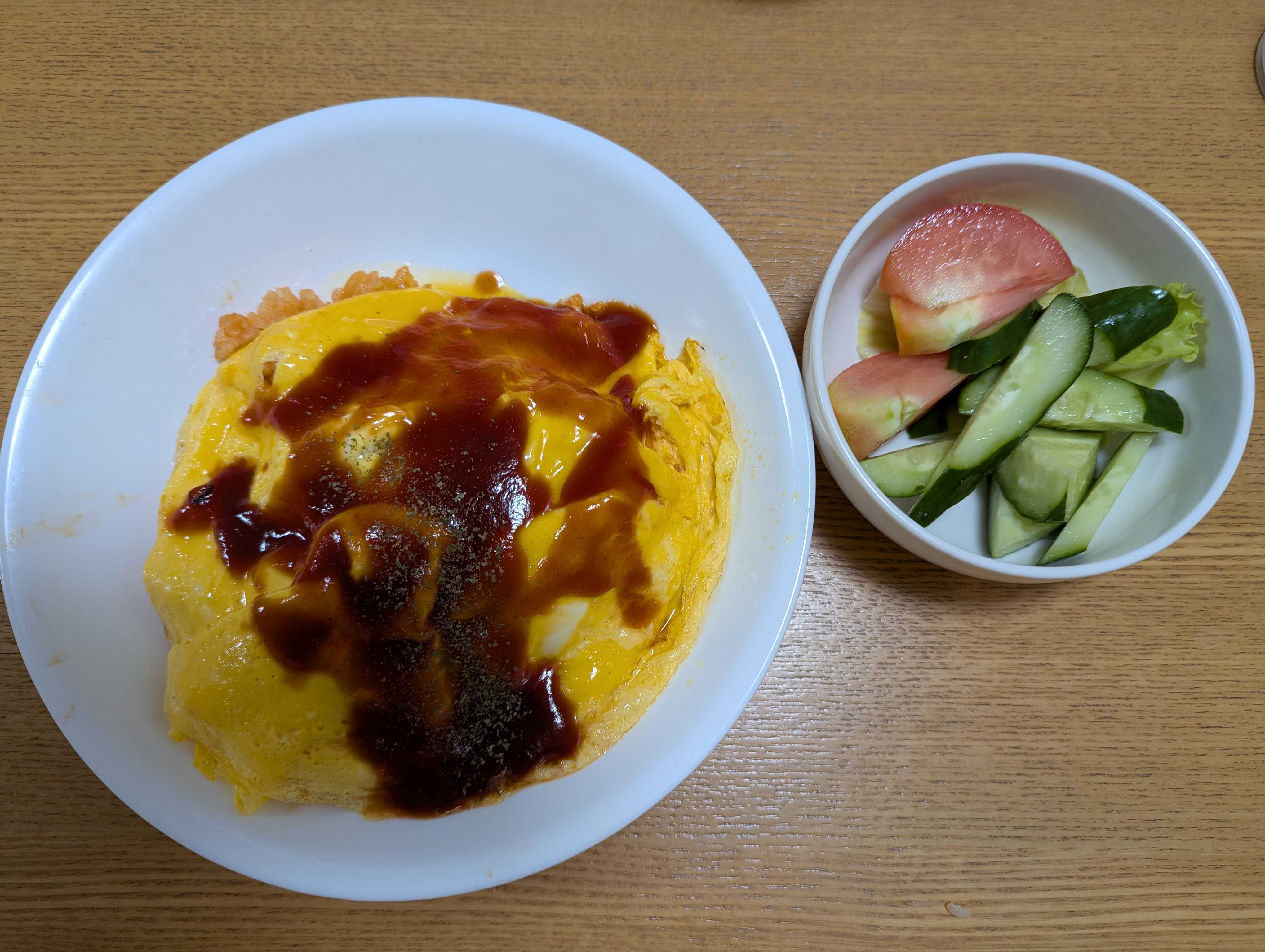 今日のランチは昨日残したオムライスとサラダ、魚肉ソーセージ。良かったら見てってくださいね♪