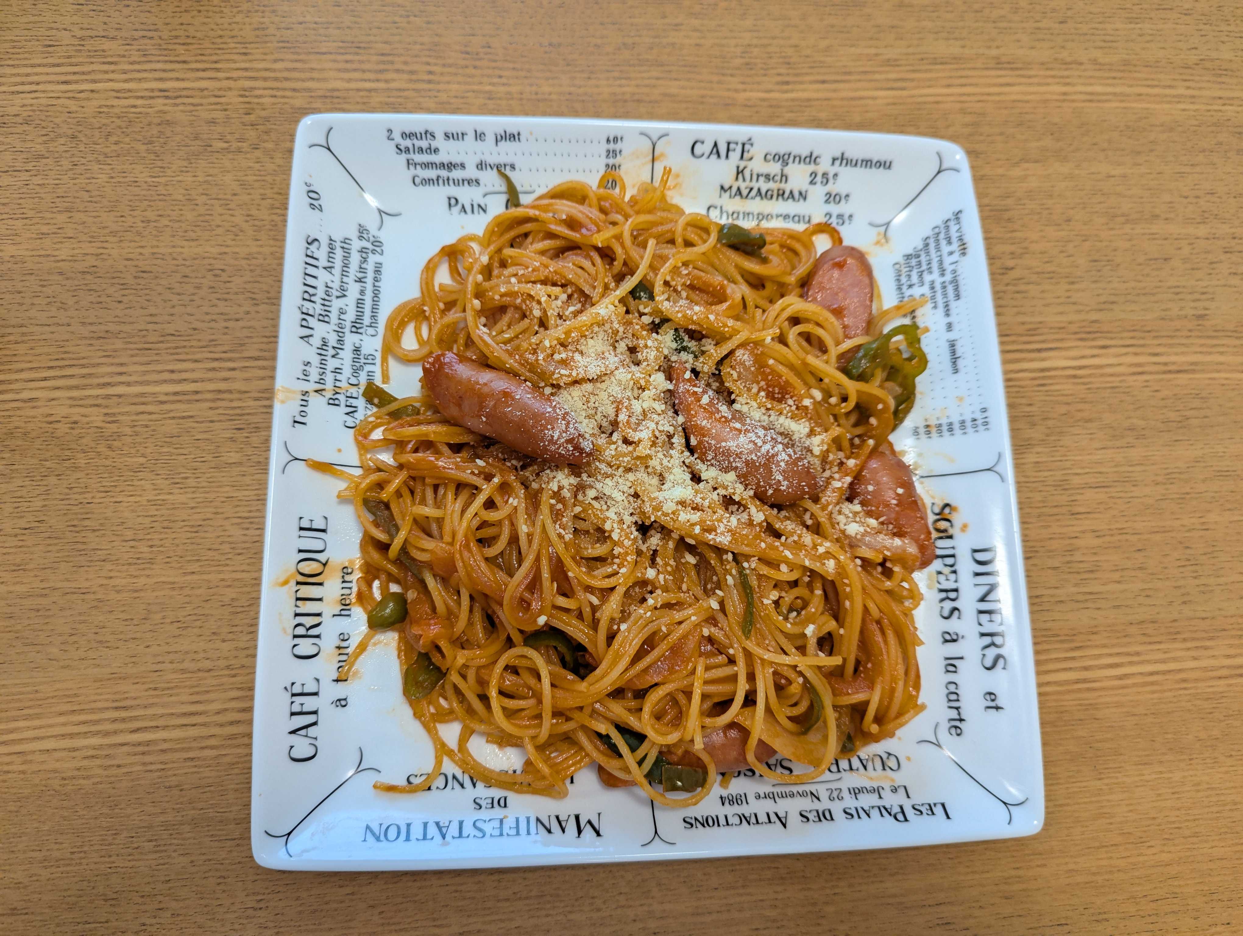 今日のランチはナポリタン。玉ねぎ、ピーマン、ウインナーを塩コショウ、ケチャップ、ソース、牛乳、砂糖をいれて炒めたソースに茹でたパスタを和えるだけ。良かったら見てってくださいね♪