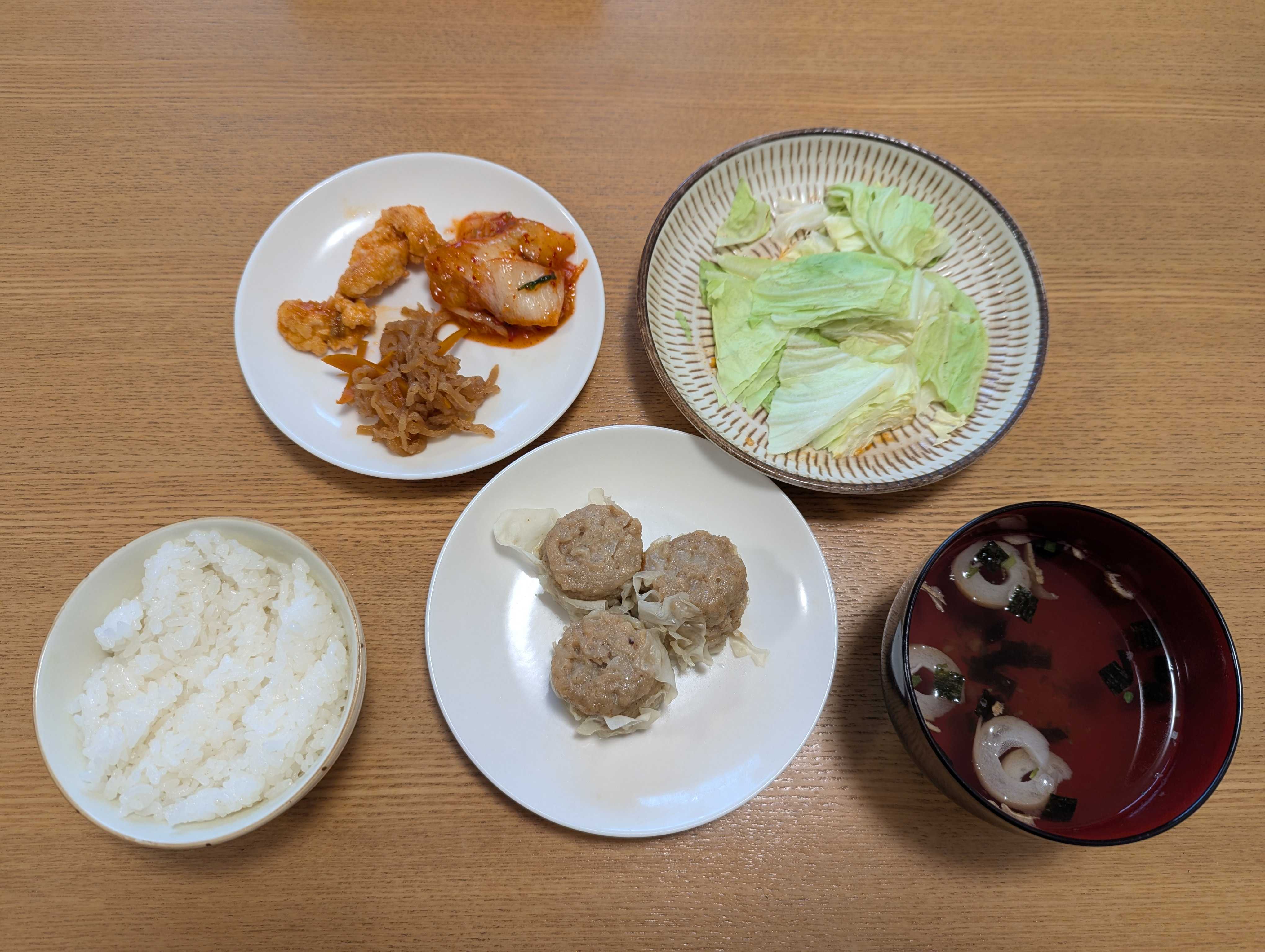 今日のランチは焼売、キムチ、鶏チリ、切り干し大の根煮物、永谷園松茸の味お吸い物。ゲンキの時間」で脂質の多い人は食事の色味が茶色いと言っていたのが気になったので、レンジでチンしたざく切りキャベツを添えて。良かったら見てってくださいね♪