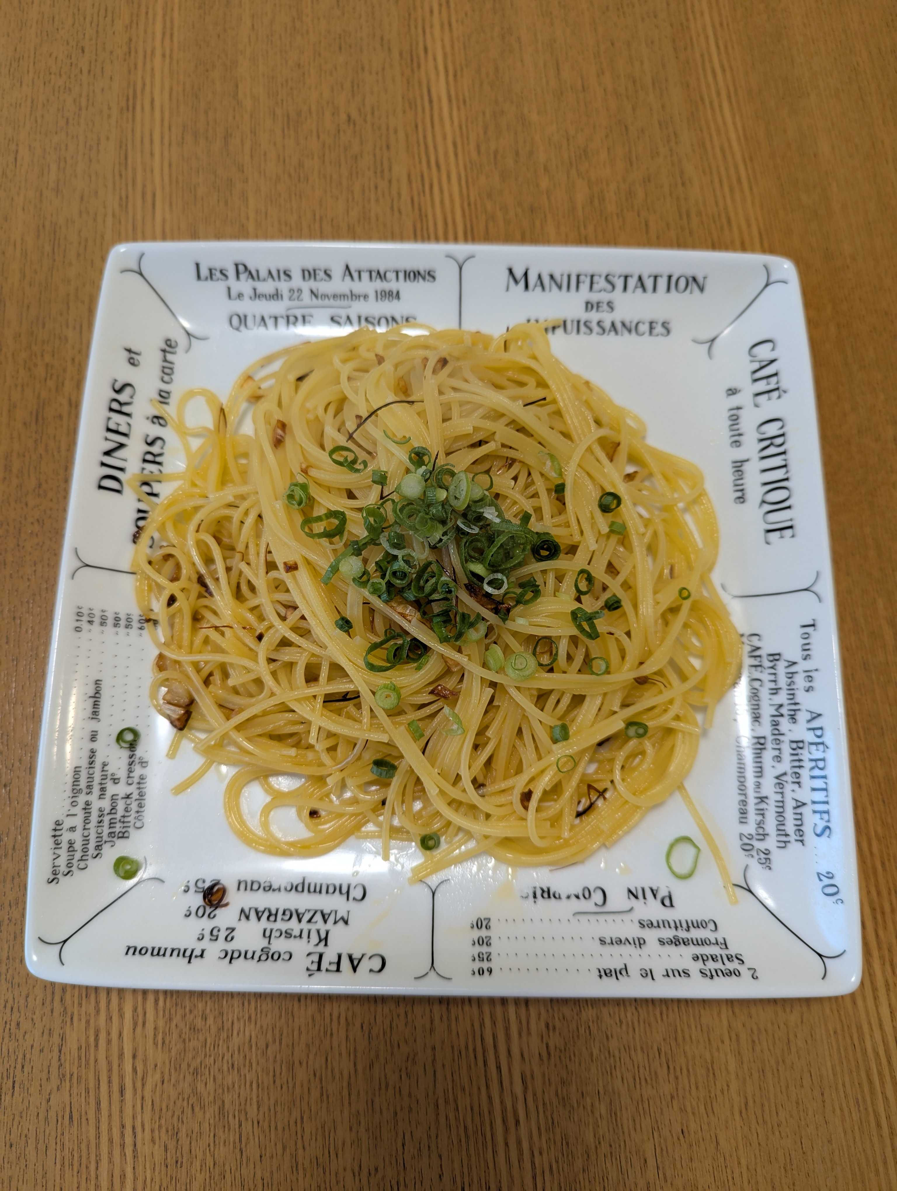 今日のランチはペペロンチーノ。ニンニクはチューブじゃなくて塩分その他の無い生を使用。輪切りでなく糸唐辛子、パセリでなく小ねぎを使用。ペペロンチーノってお外で食べると高くってより損した気分になる1品。良かったら見てってくださいね♪