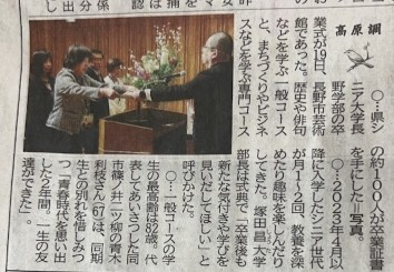 先日 シニア大の卒業式