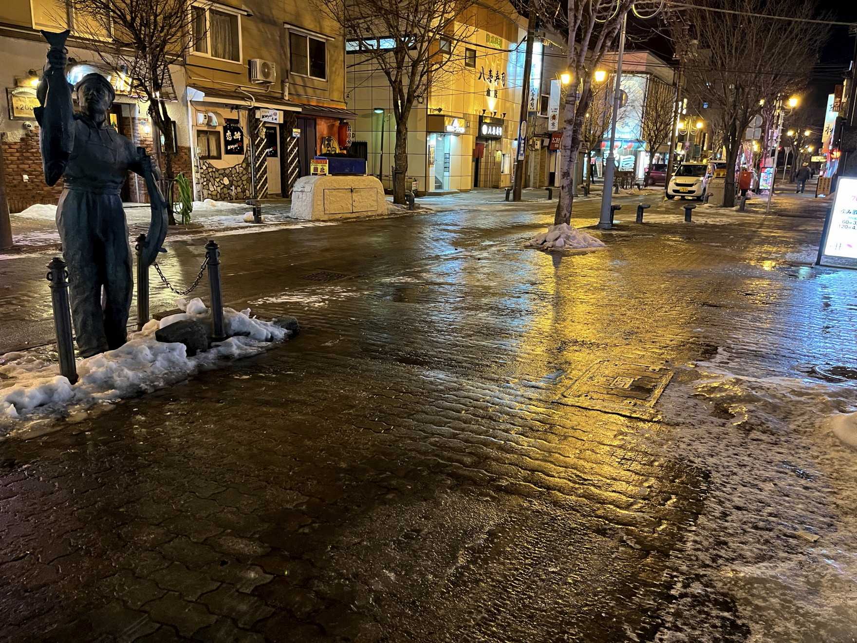 いまさらだが、おじさん今年の初出勤 ![]() 途中まで歩いてみたが、滑って何度も転びそうになったので、途中からタクシーを拾う まずは花に新年の挨拶 ![]() お通しを食べるのは、かなり久しぶりかも さっきまで活きていた尾岱沼産のホタテだが、シャクっとした食感と旨味が濃くてバツグンだった ![]() やはりこれには日本酒だろう 燗酒に切り替えて、イブリガッコのクリームチーズ載せをもらう ![]() なんだかきょうの赤横界隈は、ずいぶん静かに感じるが 日の出寿司で、少し米を食べていこうか ![]() タコがなかなかウマかった ![]() ちょっとだけ握ってもらう ![]() カンピョウ巻は、さすがにnukucchanの幸寿司本店みたいにはいかないが、悪くはない 笑の館にも挨拶 ボウモアをロックで ![]() この後、アイラ系でハイボールをアレコレヤッてみる 見送りをしてくれるカナさん ![]() 蔵人は休みだったので、再び赤横方面へ向かうが・・ ![]() 昨日の雨が凍って、スケートリンクみたいに滑ってアブナイ 寿司の後には、ちょっとアレだが、ブロウで豚ホルと牛サガリをヤッてみる ![]() ここのホルモンはウマいんです ちょっと焦げてパリッとしたところなんかタマリマセン ![]() 気が付いたらすでに10時になっていた 恐る恐る某スナックへ向かうが ![]() 夕方降った雪が氷の上にサラッと積っていて、非常にキケン 何度も、のけ反ったりタコ踊り?をやったり・・ なんとか無事にたどり着いた某スナック ![]() 結局12時近くになってしまった ふぅ~・・でも半分くらいは記憶があります 昨日のCOCO壱 野菜カレーにカキフライ4個、ライスはカリフラワーライス 1512円 ![]() 衣が若干厚めだが、今回はサックリふんわりとかなりイイ感じだった 先日の厚岸コンキリエより、こっちの方が良いかも 久しぶりのカリフラワーライスだが、それほど違和感は無いかも ![]() 今回も3辛だが、何故かそれほど辛くは感じなかったような? さて、今年の出勤はどのくらいになるだろうか? ちなみに昨年は、たったの40回だったが お気に入りの記事を「いいね!」で応援しよう