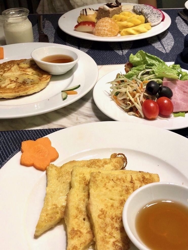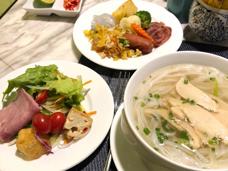 ハロン湾クルーズ2日目、そして最終日です 朝食ではなく、軽食です ナイフとフォークを使ってバナナを食べたの、30ン年ぶり~🍌食後すぐに、ティートップ島に出かけました 🚤ティートップさんがお出迎えしてくれます。ティートップ島での上陸時間は約一時間 ⏲海水浴も楽しめますが、私たちは迷わずハイキングへ 400段の石段を登りますよー 張り切って出発したのはいいけれど、昨日のカヤックでの筋肉痛もあり、親二人は脚がガクガクですわ… なんとか登りきりました さすが、世界自然遺産。どこから見ても絶景です 今日も晴れてよかったー けど、日本は台風だったので申し訳ない気分でもあります 船に戻って、今度はブランチ 朝の軽食から3時間しか経っていないのに、こんなにも食べられるなんて。石段昇降でどんだけエネルギー消耗したんだろう… ハロン湾クルーズ終了です 🚢バスに揺られて3時間。ハノイにもどってきました 帰国前に、ロッテセンターハノイ65階の展望台へ。地下のロッテマートには毎回来るけれど、展望台に上るのは初めて 65階は地上253m230,000ドン(約1150円)と、入場料まで高い 地下一階から高速エレベーターに乗り、50秒で到着します。エレベーターの表示は51階通過時。65階に到着しました253mって、やっぱり高いですね~ハノイの街を一望できます。タイ湖もバッチリ見えまーす こんなフォトスポットもあちこちに ガラスのフロア、スカイウォーク👣足がすくんで長くは立っていられませんでした 晩ごはんは、空港でブンチャーをいただきました ブンチャーの麺って、何でこんなにてんこ盛りなんでしょうねー。 ラビ太、ただいまー 娘からのお土産、ちっちゃいノンラー(約25円)。