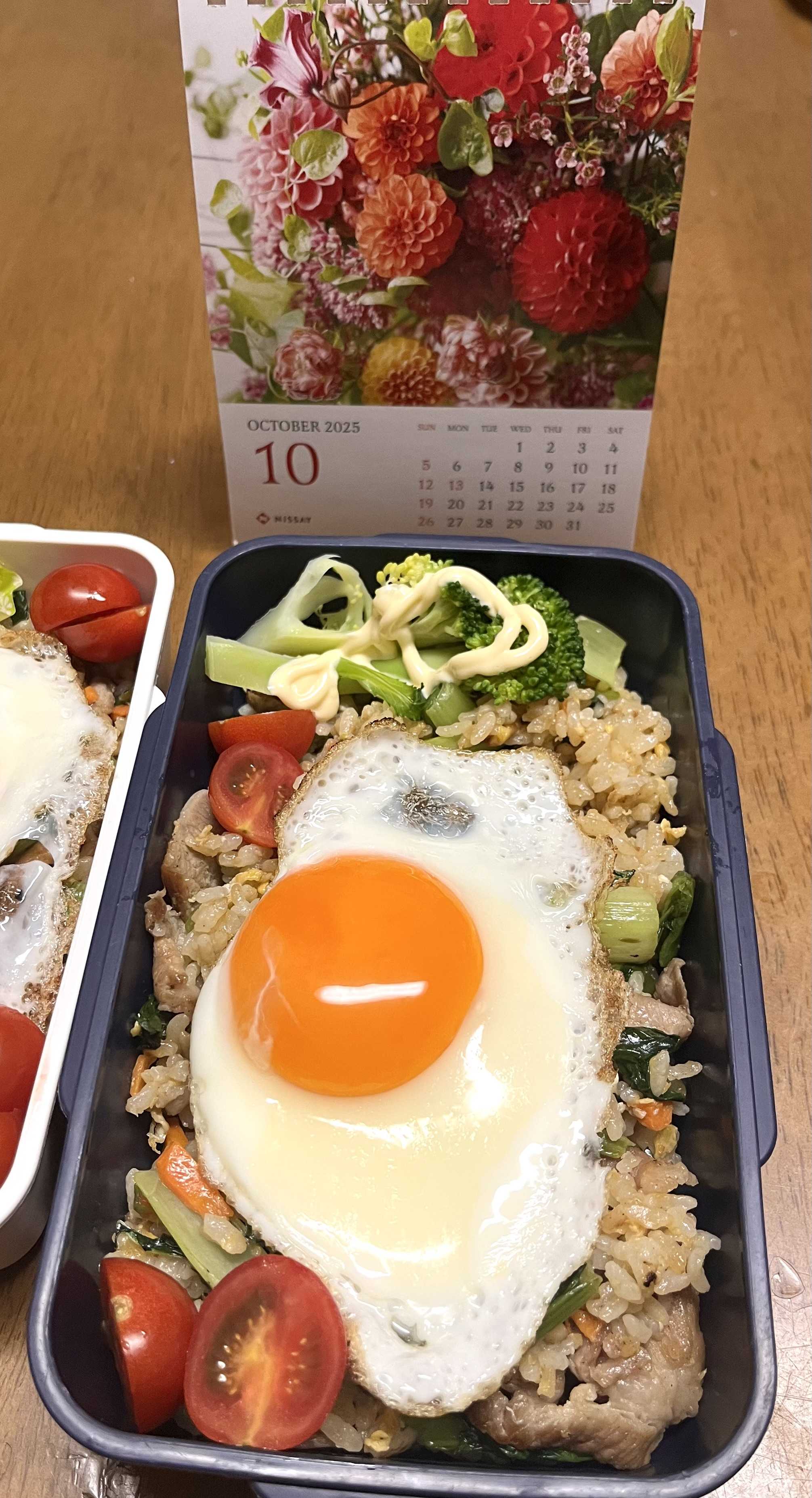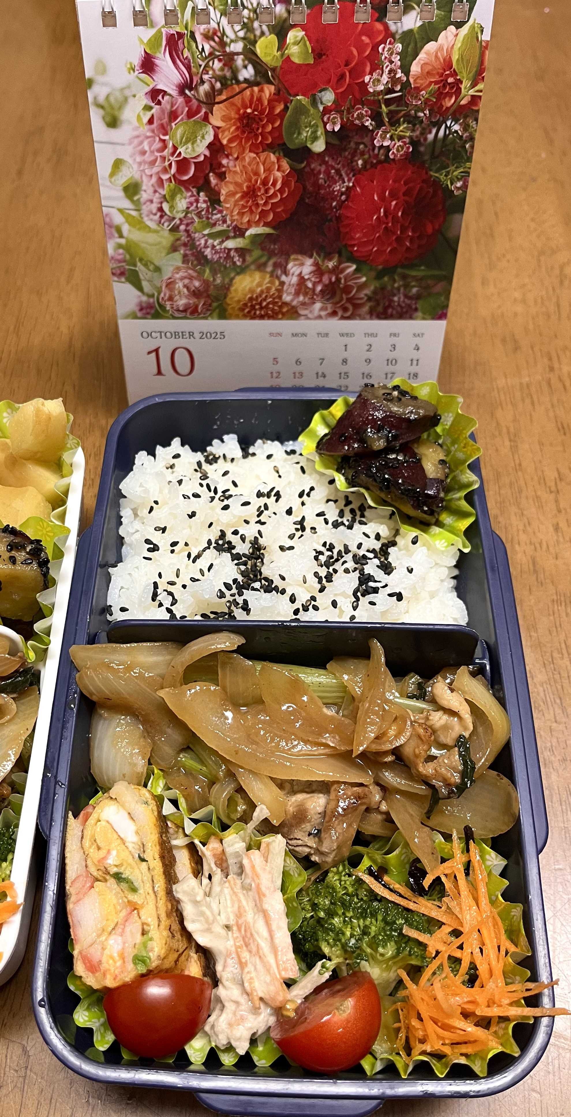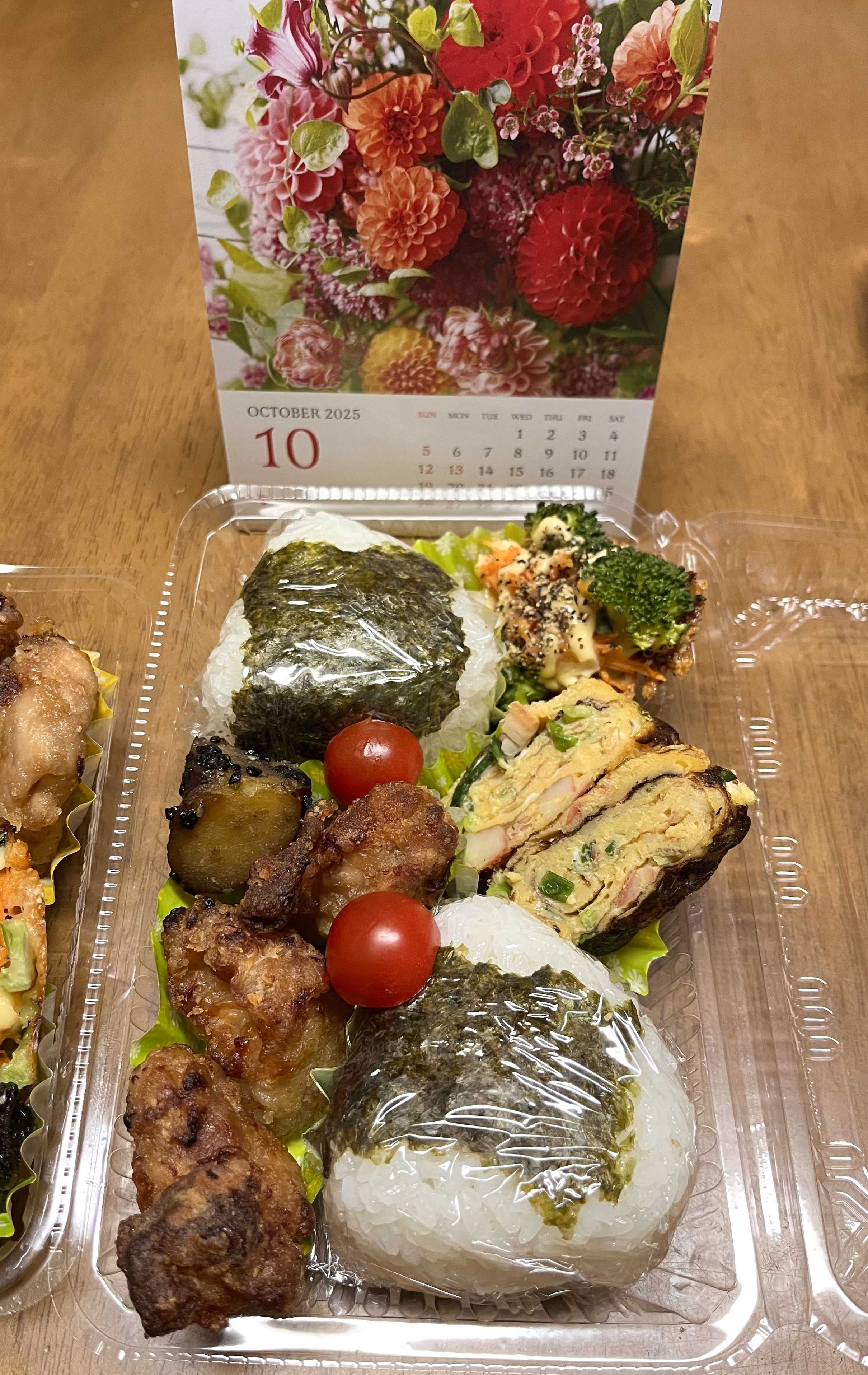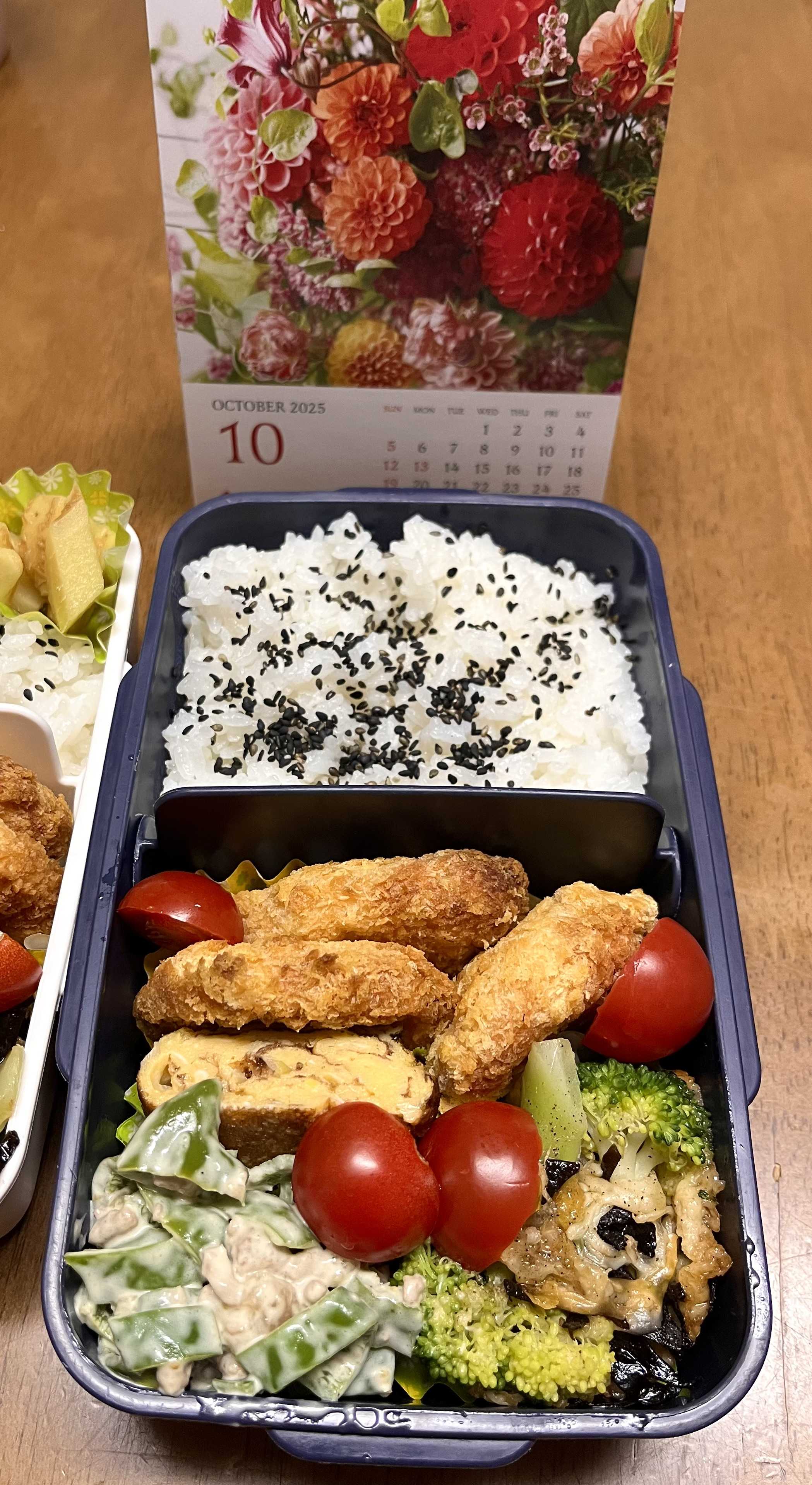 🍀2色➕αそぼろ弁当。 ![]() この日は中秋の名月🌕💕。 ![]() あいにく、青森の空にはお月様見えませんでした😢。 ここ数年恒例の満月🌕デジカメ写真、 今年は撮れず😅。 10月7日(火)。 🍀焼肉弁当。 ![]() とにかく野菜たっぷりを意識します👍。 食べたもので体ができている‼️。をりんに伝えてます。 いずれ、母ちゃんの元巣立って行くからね😭。 10月8日(水)。 🍀おにぎり唐揚げ弁当。 ![]() この日は高校最後の運動会💕。 外仕様の好きなもの弁当作ったんだけど…。 保護者も見にきて🆗の運動会。 私にとっては子育て最後の運動会。 私はしっかり有給休暇もらって朝から観覧する気満々。 だが…、 りん、前の日から体調不良😭。 朝、発熱🥵。 最後の運動会、欠席になっちゃいました😢。 ![]() りんがいなくても、母ちゃん、見に行って来ました👍。 りんのクラスの動画撮ったり、 子供達の様子をりんと重ねて見て来ました。 高校生、みんなかわいい😍。 10月9日(木)。 目玉焼きチャーハン弁当。 ![]() りん、回復して学校に行きました👍。 10月10日(金)。 🍀エビカツ弁当。 ![]() 今週のランチ。 (水)のランチだよ。 ![]() 🌸ビックマック風トーストサンド。 ![]() 最近、私のモードは冷凍保存レシピ検索。 このマック風のサンドも、 見つけた冷凍レシピなんだけど、 これはリピートなし…。 ハンバーグタイプのフィリングだと、 焼くのに時間かかりすぎ😱。 じいちゃん達のランチ時間に間に合いませんでした😭。 同じ材料でひき肉炒めタイプレシピの方をリピにします。 インスタレシピでいいなぁ、って思ったけど 私的にはボツ🥵。 でも、味はめっちゃ美味しかったよ😍。 そしてさつまいも🍠の季節。 いよいよあのどデカいさつまいも、着手しました👍。 ![]() ホットクックスイートポテト、 既に2回作ったけど、すぐに完食〜。 写真も撮り忘れ😅💦。 とても簡単に出来ちゃいます💕。 そしてかぼちゃ🎃の季節でもあります💕。 いも🍠、くり🌰、かぼちゃ🎃、 りんも私も大好きです💕。 畑のかぼちゃ🎃。 ![]() ホットクックでとりあえず丸ごと茹でモードしてみました👍。 これ、どうしようかな😅💦。 候補は、 グラタン、肉詰め、プリン、チーズフォンデュ、 他に何かあるか、リサーチ中。 お気に入りの記事を「いいね!」で応援しよう