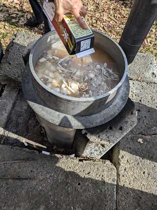 ![]() 本日は那須のご意見番さんのお宅で芋煮会。平日開催が多く、妻は何度か参加したことがありますが、夫は初参加 朝9時半に伺い、準備です。妻は里芋を剥いたり、おにぎりを握ったり ![]() 先ずは大きな羽釜で牛肉を炒め、一旦、取り出します。 ![]() メインの里芋を投入し、煮込み開始 ![]() 調味料で味付けです。 ![]() ネギやこんにゃくなども投入。 ![]() できあがり ![]() 20人以上の人が集まり、アルコール呑みつつ(妻は運転手で呑めません ![]() 晴れて暖かくなって良かったです。これも日頃の行いのお蔭かな? お気に入りの記事を「いいね!」で応援しよう