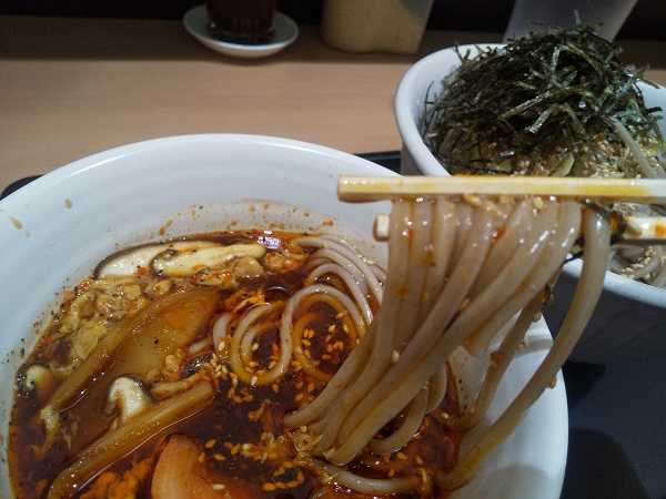 つゆにラー油を入れること、コシのある太いそば等、この手のそばの先駆者である【港屋】インスパイアであるが、独自性の強い商品も多く提供している。