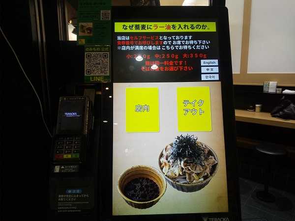 食券を買って入店。自動オーダー&進捗状況表示モニター&機械音声案内の3点セット。