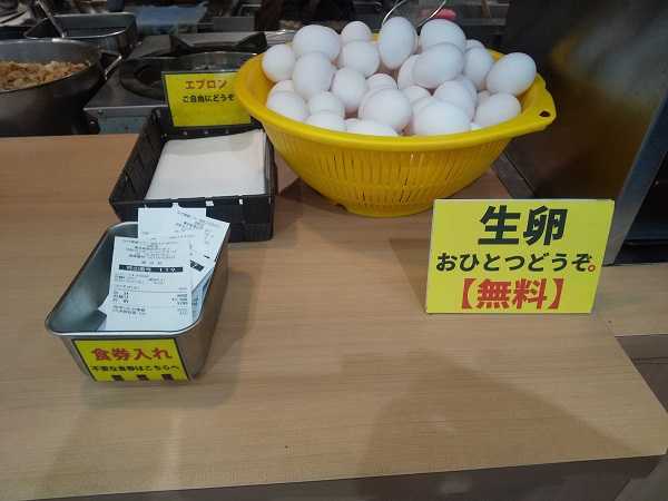 生卵は1個もらっておく。紙エプロンは今回はとても助かった。