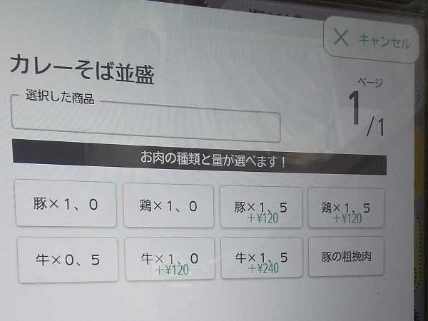 玉子がなくてもいいから「肉そば」のほうをタッチ。