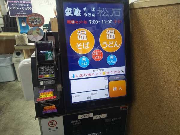 入店してすぐのところに券売機。「温そば」を選択した。