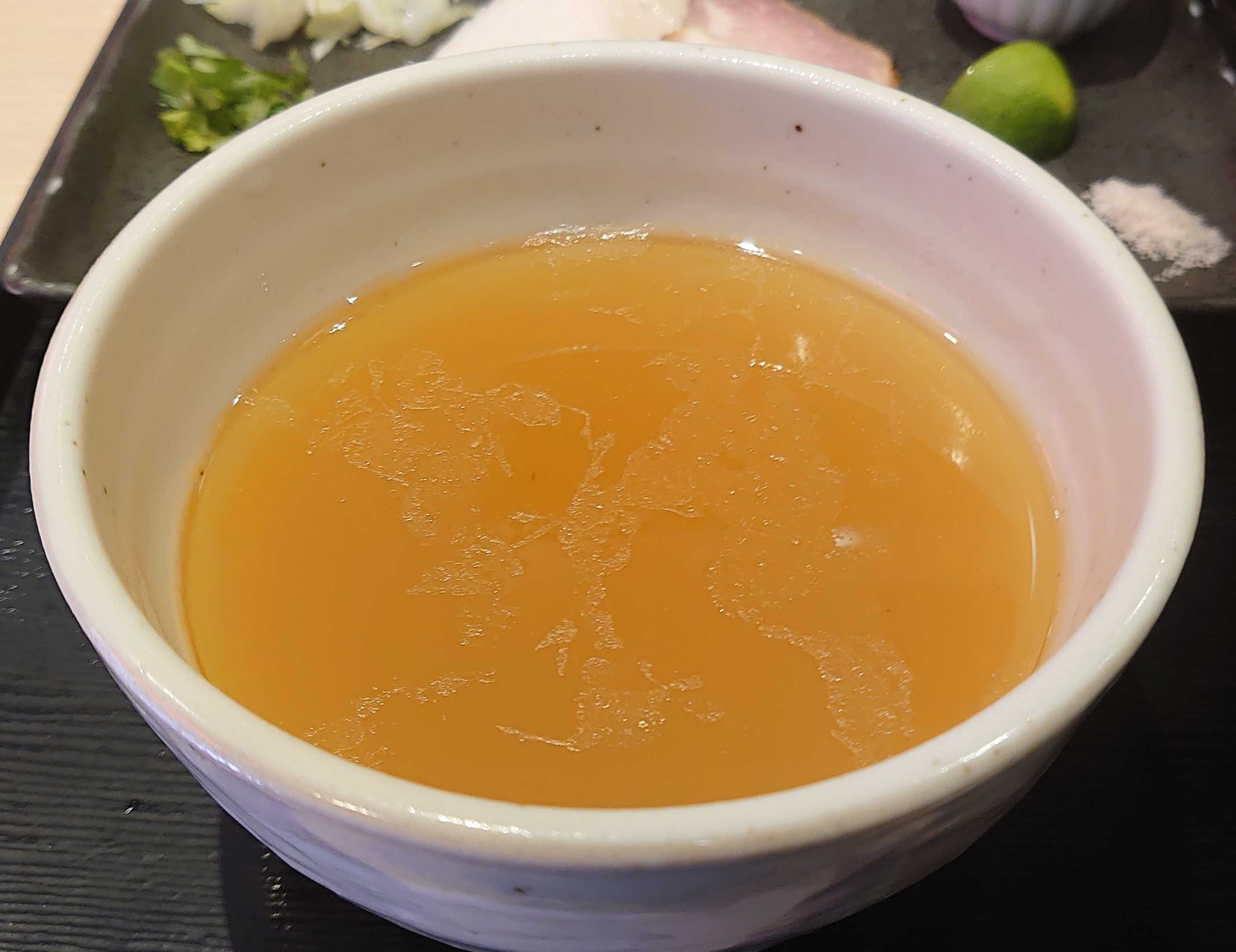 細つけ麺(塩)+小ライス+黒烏龍茶 (水曜日限定)(30食限定) 30分前で11番目、 T店長とはkiriンダ軒以来の再会です😁 ↑ まず藻塩、かぼす、舞茸鶏油で 心の味食品の細麺を堪能😋 続いて、鶏+豚+貝のつけ汁で またつけ汁が塩味なので雑炊も堪能😋 ↑ 心の味食品の細麺を堪能😋 ↑ つけ汁は醤油か塩で選べます。 ↑ トッピングは、 刻み葱、紫蘇、叉焼、舞茸鶏油、かぼす、藻塩 ↑ つけ汁(鶏+豚+貝)をかけた、 出汁のきいた雑炊が美味い😋 貝出汁の時は小ライスがオススメ😋 ↑ スープ割は麺に浸った汁ではなく、 一燈のつけ麺の割スープで割る、沁みる😋 ↑ 建物外観 入口の席にいた私に、PPの常連さんが、帰り際に、 『醤油』が美味いと言ってきたので次回は必ず『醤油』😁 最後まで読んでいただき、ありがとうございました。 #麺屋一燈 #一燈 #限定 #水曜日限定 #細つけ麺 #つけ麺 #心の味食品 #平和橋通り #新小岩 #葛飾区東新小岩 東京No.1のつけ麺はお取り寄せできる。 麺屋一燈公式通販もあります。