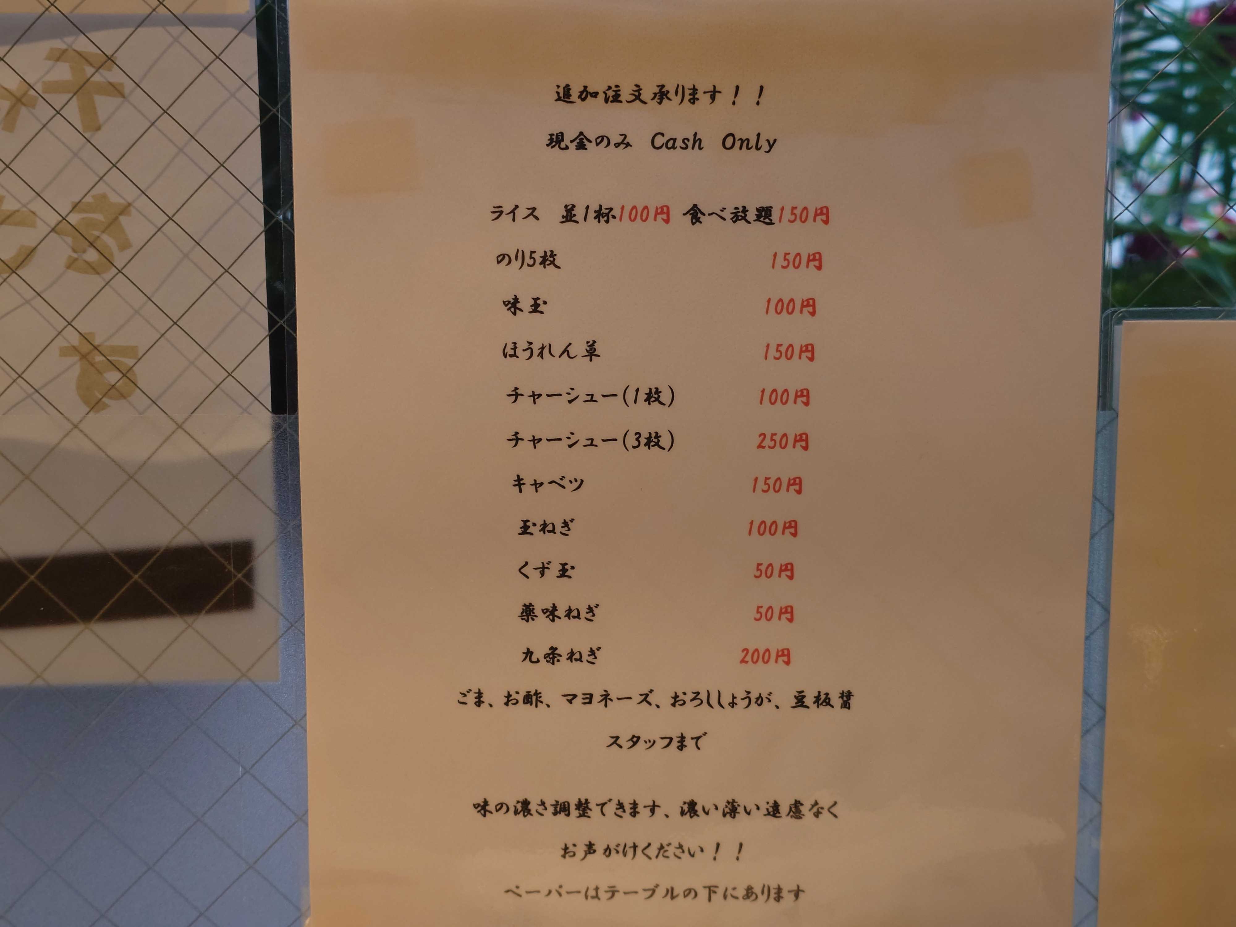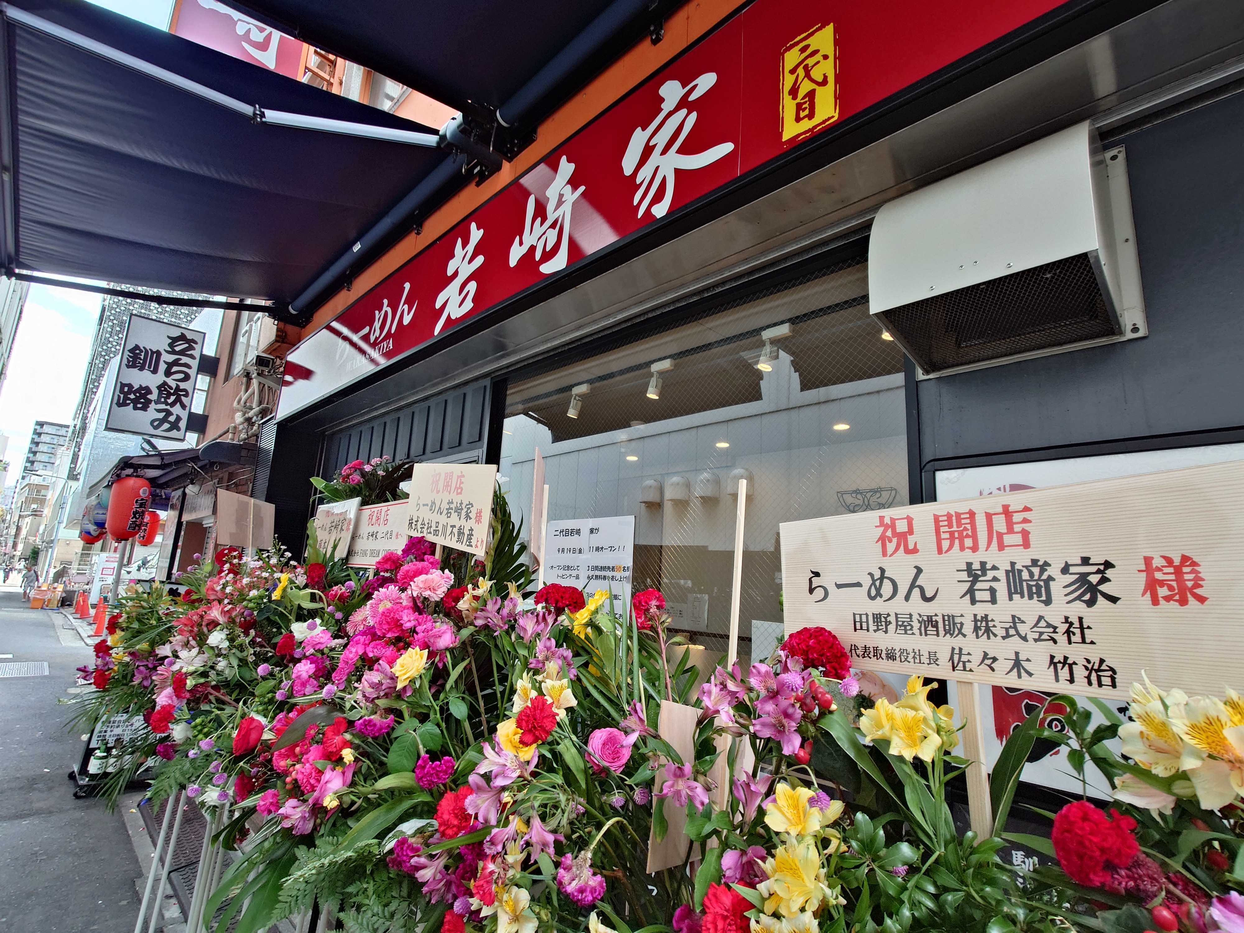 🟥二代目 らーめん若崎家 高田馬場の若崎家の2号店が、吉池の裏にオープン💥 ㊗️開店おめでとうございます🏵️ 店主は名店の漢ラーメン室(錦糸町)、谷瀬家の出身です😋 先着50名にトッピング永久無料券を配布する事なので、 開店40分前到着したが、前から5番目。開店時行列10人😮 麺、味、脂は選べる、私は🗣️普普普を選択しましたが、 私以外(ファスロ)は、ほとんどが硬濃多を選択しました😮 特製らーめん(並)(普普普)+ライス(並) チャーシュー(3日間限定のサービス) ![]() ↑ 濃厚な醤油強めの豚骨醤油スープに中太麺絡み美味い😋 ![]() ↑ 特製トッピングは海苔×5枚、ほうれん草、チャーシュー×6枚 特製のデフォルトのチャーシューの枚数は不明だが、 チャーシュー6枚中の1枚が開店3日間サービスで、 1枚小さいのがあったのでデフォルトは4枚だと思う🤔 ![]() ↑ 私が過去に食べた家系ラーメンで1番太いかもしれない🤔 ![]() ↑ 卓上調味料は、七味の醤油漬け、おろしニンニク、青ガッパ ![]() ↑ 胡麻、お酢、マヨネーズ、おろししょうが、豆板醤は、 店員を🗣️呼ばないといけないシステム。 水はセルフ式スタイルで、 ピッチャーはカウンター席、テーブル席の両方に有る。 コップは入口にあります。 ![]() ↑ ライス(並)に七味の醤油漬け、おろしニンニク、青ガッパに 🗣️マヨネーズをお願いして、食べるのが美味い😋 器はライス(並)だと、『白』、ライス食べ放題だと『黒』に ![]() ↑ 店の外にある券売機(※開店前に撮影した画像です) ![]() ↑ トイレ🚻案内図 (開店前に並んでいる時に行ってきました) この紙は、店内にも貼ってあるので参考にしてください😐 下の画像を見てくれたらわかりますが、 蟹村ではなくて、かに村になりますね。 上の画像はわかりにくいので、かに村にある若崎家への図か Googleで位置を事前に見た方がわかりやすいと思います🤔 ![]() ↑ かに村上野本店のトイレを利用する形になるのですが、 画像は10:20に撮影してるのですが、入口が半開き状態です。 中に入ったら従業員の方がいて↑上の上の画像を見せて トイレを借りました。1番右奥にトイレがあります。 『かに村』入口にある看板↑の『若崎家』への案内の方が わかりやすいです。 ![]() ↑ トッピング一品、永久無料券をGET😋 9/19(金)〜9/21(日)の3日間、 先着50名様にトッピング一品永久無料券配布です😋 ![]() ↑ 建物外観 最後まで読んでいただき、ありがとうございました。 #若崎家 #二代目若崎家 #特製らーめん #らーめん #家系 #家系らーめん #トッピング一品永久無料券 #オープン #開店 #新店 #祝花 #漢ラーメン室 #吉池 #かに村 #御徒町 #御徒町グルメ #台東区 #台東区グルメ #仲御徒町 #上野御徒町 #麺グルメ お気に入りの記事を「いいね!」で応援しよう