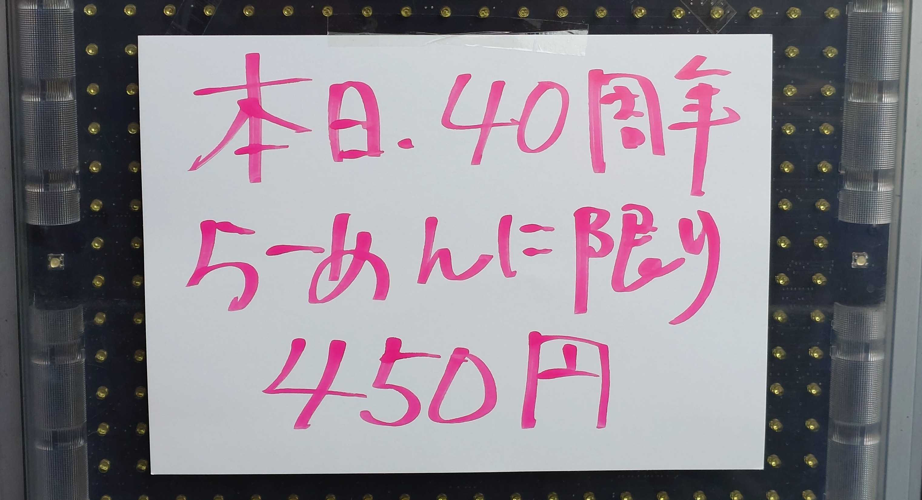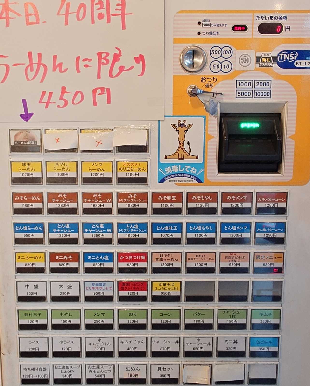 👺らーめん弁慶 堀切店 ㊗️らーめん弁慶 堀切店 40周年おめでとうございます🏵️ らーめん弁慶の1号店⚡️しかし本店は浅草にあります😅 40周年記念イベントは、創業価格の450円で販売です😋 建物の老朽化で、一昨年位にリニューアル工事しましたが、 奥の方をスタンド形式、手前の方を座席にしましたが 今日ひさしぶりに行ったら奥のスタンド(立ち食い)部分も、 座席(5席分)になってたので、今は立ち食いはしてない😋 リニューアル当時、1人1人に立つか座るかを聞いてたので、 店員が少ない時はオペレーションきついかもと思ってた🤔 堀切店リニューアルの時に販売した回数券は今回はなし、 堀切店リニューアルの時になかったグッズ販売ガチャは有 会長、社長、ニャット店長、ルックさん+グッズ販売の人 行列は20人、着丼までは50分、らーめん 🗣️ギタギタ注文 ![]() ↑ らーめん、🗣️ギタギタ 背脂ギタギタの食べ終わるまで熱々スープに、 浅草開化楼のオリジナル麺が絡んで美味い😋 トッピングは 自家製豚バラチャーシュー、もやし、白ねぎ、メンマ ![]() ↑ らーめん弁慶の自慢の酸味がきいた豆板醤での味変が美味い😋 ![]() ↑ らーめん弁慶自慢の特製すりおろしニンニクでも味変美味い😋 ![]() ↑ 40周年記念のらーめんの券売機のボタンは左上にあります😋 ![]() ↑ 堀切店リニューアルの時になかったグッズ販売+ガチャも有 浅草店周年の時に、ガチャが全てキーホルダーだったので 今回はやりませんでしたが 今回のキーホルダーは浅草周年の時と違うバージョンです😋 ![]() ↑ 40周年、らーめんに限り450円の販売です😋 ![]() ↑ 40周年記念ステッカー(食券回収時にもらえます) 背脂チャッチャする感じに動くステッカーになっています😋 ![]() ↑ 建物外観 最後まで読んでいただき、ありがとうございました。 #らーめん弁慶 #弁慶 #周年 #40周年記念 #40周年記念イベント #らーめん #ギタギタ #背脂チャッチャ #浅草開化楼 #堀切店 #堀切菖蒲園 #堀切菖蒲園グルメ #葛飾区 #葛飾区グルメ #麺グルメ お気に入りの記事を「いいね!」で応援しよう
