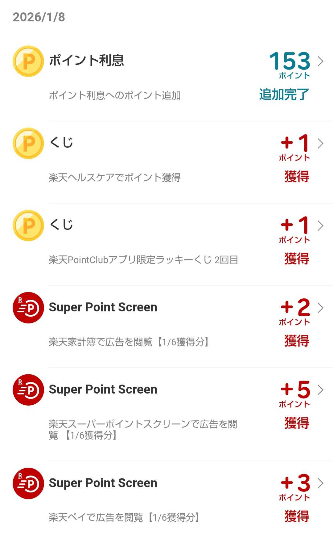 進呈ポイント数 ポイント付与日1ポイント 2026年2月25日頃1/6(火)更新