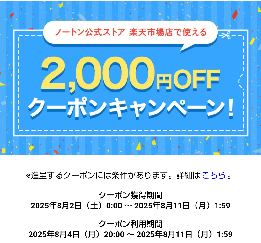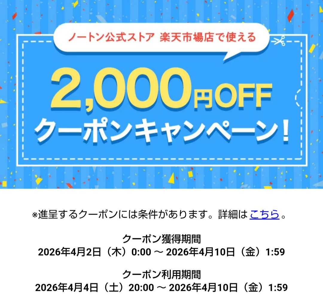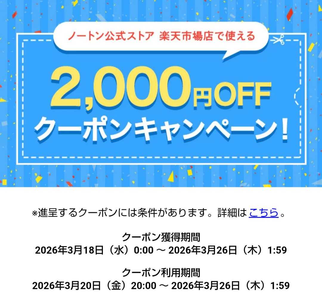 ノートン公式ストア 楽天市場店限定2,000円OFFクーポンキャンペーン!!