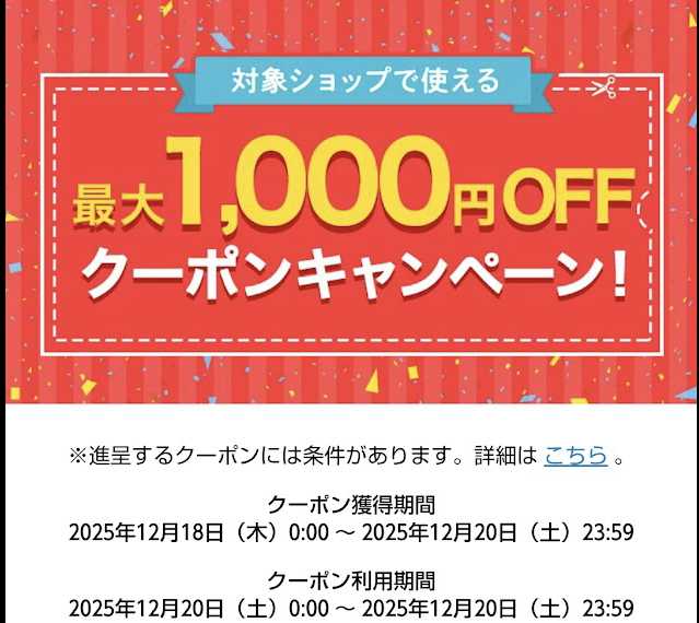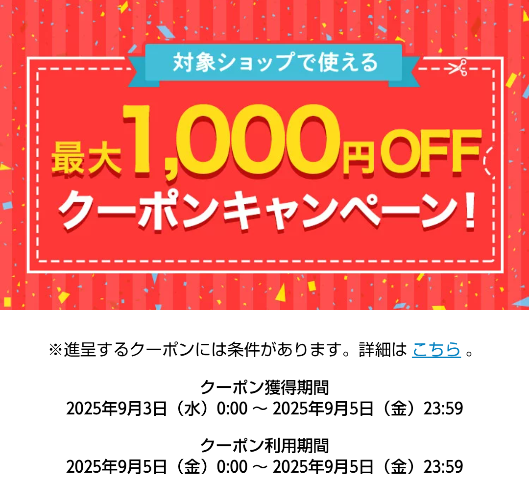 対象ショップで使える最大1,000円OFFクーポンキャンペーン!