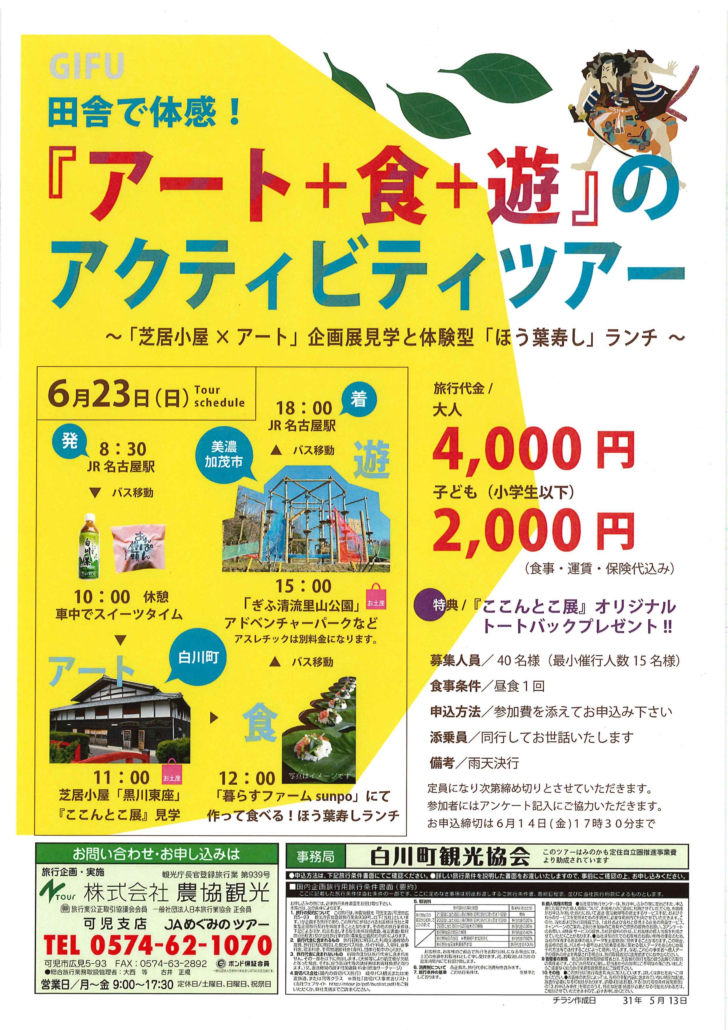 こんにちは。白川町地域おこし協力隊です。昨夜の白川町はとても美しい星空が広がっていました。(画像提供:五段農園 高谷さんより)空気が澄んでおり、1つ1つの星が光り輝いていました。星空を眺めると1日の疲れも忘れてしまいそうです。さて、世間ではもうすぐ夏休みを迎えますが夏休みの期間に合わせて親子で体験チャレンジツアーを開催します!夏満喫!マスつかみと竹クラフト体験!つかみ取りした魚はその場で焼いて、いただきます(^^)竹クラフト体験では、竹で器とお箸のマイ食器をつくり、マイ食器を持ちながら流しそうめんをいただきます♪8月4日(火)、19日(水)に親子で体験チャレンジツアーを実施しますので、ご都合のいい日程でご参加ください(^^)ご予約・お問い合わせに関しては、JAめぐみのツアー(TEL:0574-62-1070)までお願いします。********************************~以下、ツアー詳細になります~親子で体験チャレンジツアー○マスつかみ○竹の器とお箸づくり & そうめん流し○帰りはゆったり里山の湯 or 昭和村散策開催日時:8月4日(火)・19日(水)時 間:8時30分~18時集合場所:名古屋駅(銀時計)参 加 費:中学生以上 4,000円 :4歳~小学生1,000円 ※3歳以下の申し込みは不可・親子での参加に限ります 備 考:昼食・お土産付き・名古屋駅発着バスツアー********************************
