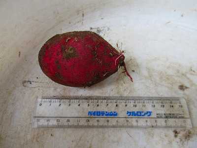 植え付けから120日~150日、 または9月下旬から11月上旬と出ていました。 植え付けたのは6月17日。 それから計算すると やはり11月上旬だったようです。 葉っぱが黄色くなったらと待っていたら いきなり黒くなってしまったのです。 初霜が降りる前に収獲するべきでした。 本当は今日にでも堀り返したかったのですが、 生憎の小雨。 傘をさして試し掘りをしてみました。 ![]() 右端のあたりはなると金時を植えたはず。 ![]() なると金時、全長約8cmのものが1個出てきました。 明日は晴れの予報なので 全部掘り返してみます。 沢山、出来ているといいなぁ。 お気に入りの記事を「いいね!」で応援しよう