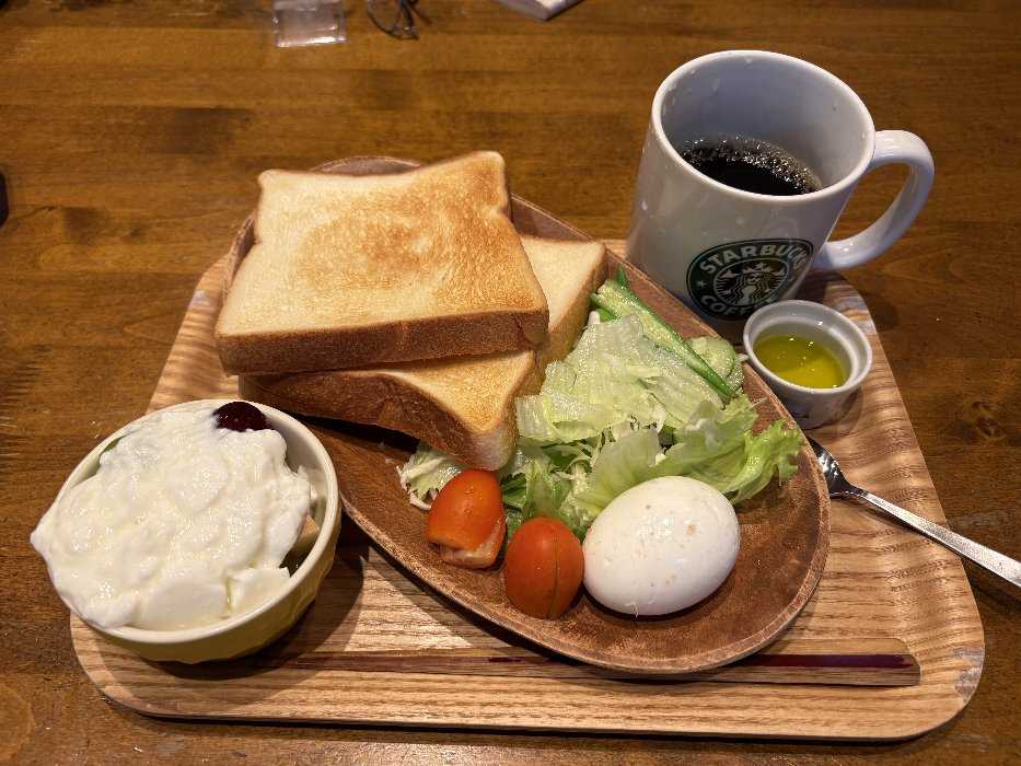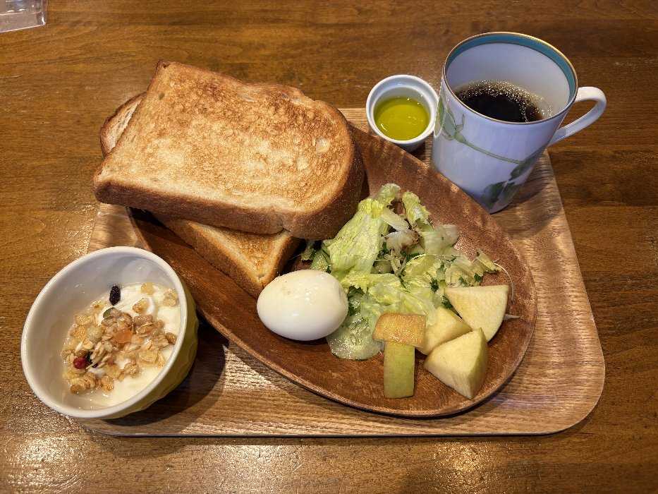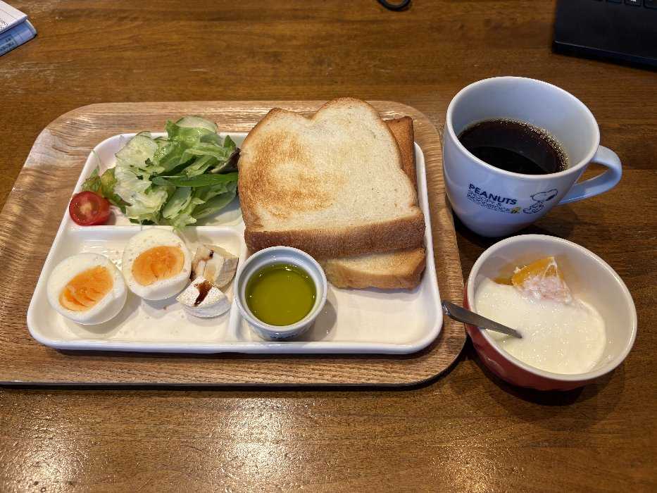 食パンにたっぷりのオリーブオイルをぬって頂きましたとっても美味しかったです野菜とゆで卵、キューイフルーツで美味しく頂きました今日も元気にスタートしました