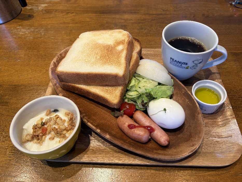 妻のお気に入りの朝ごはんに付き合いましたバランスの良いメニューにグラノーラを食べてとってもヘルシーでした