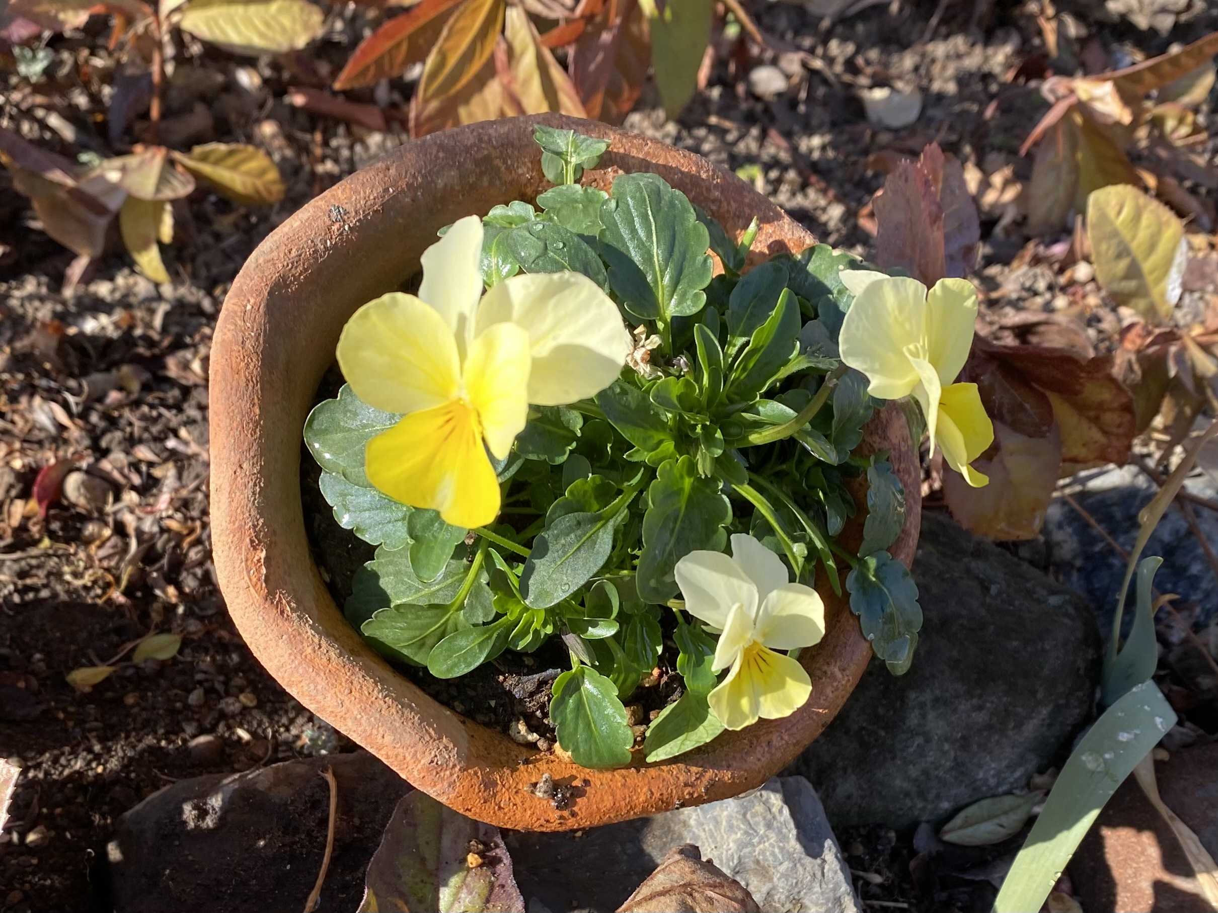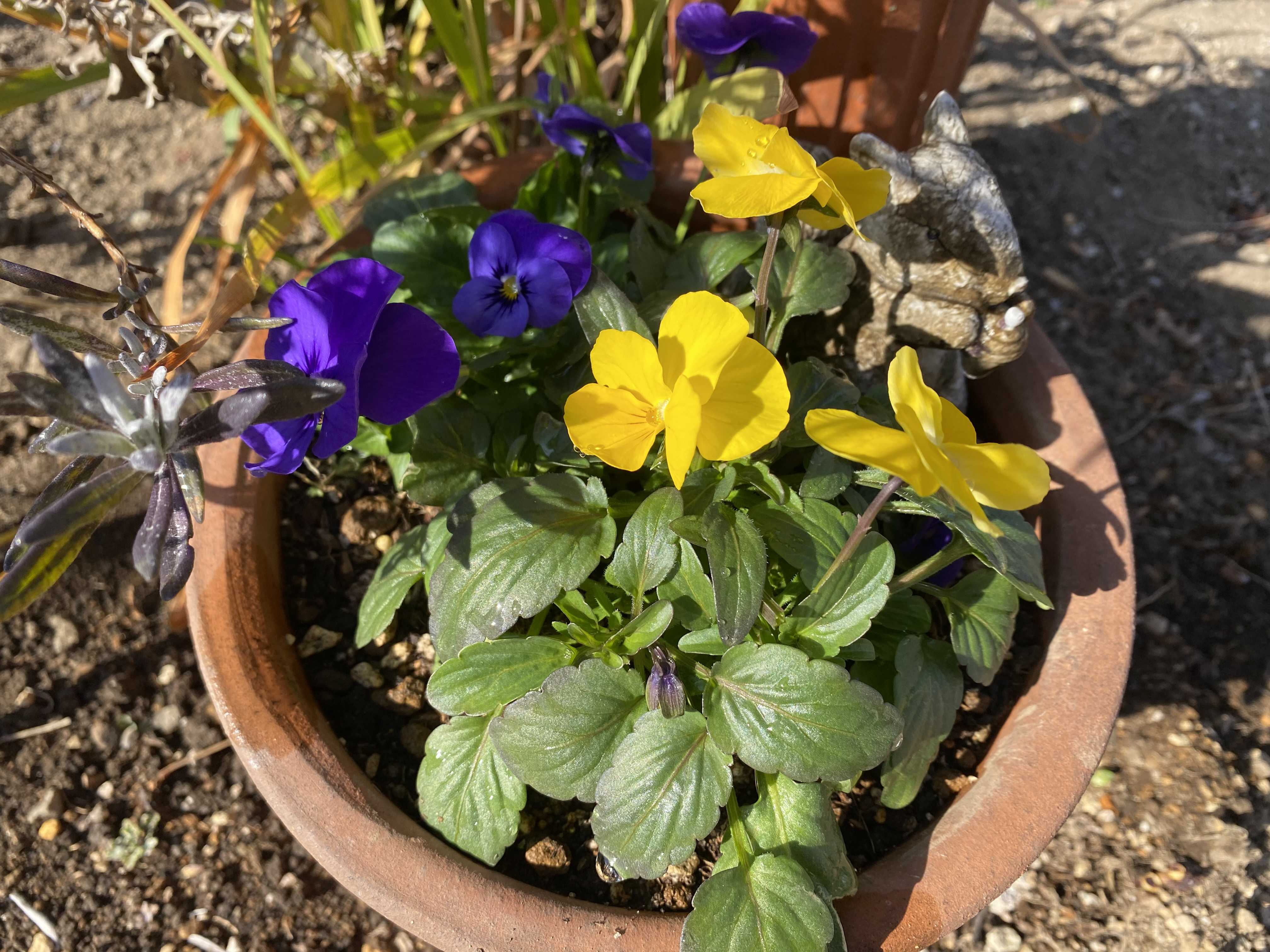 鉢植えのビオラが陽射しの中で、気持ち良さそう。 なんでもかんでも地植えの私の庭ですが、 冬ばかりは仕方なく、幾つかの鉢に、ビオラを植え、 助けてもらっています。 安価な、見切り品ばかりですが。(笑) 液肥をあげているので、そのうちモリモリになるかな。 梅ヶ枝餅を頂きました。 大好きなので、嬉しい。 冷凍なので、レンジでチンしてから、トーストします。 こんがり焼けて、さっぱりアンコの美味しいこと! お二人のお客さま、お直し三点お預かりしました。 来るものは拒まず、がんばりましょう。 花ブログランキングに参加しています。 応援のクリックをよろしくお願いします。 昨日のアクセス数 2307 昨日のランキング順 4 位