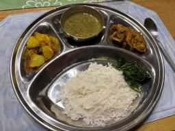 金曜日はKanaちゃん先生のヨガの練習です♪ ヨガ前体重 97.85Kg ヨガ後体重 97.60Kg 何でか体重が多い... 結構気にして暮らしているのに、この体重って事は何をしても変わらないと言う事なのかしら... やる気がだんだん失せて来たわ~~ ( ̄▽ ̄) ![]() と言う事で、お昼は地元イタリアン「Goloso Tetsu」でパスタランチでございます♪ パンをお願いして、それをつまみにワインを頂くと言うYutube番組「ボナペTV」の真似をしてのお昼はなかなか宜しい ( ̄ー ̄)ニヤリ 久し振りのパスタに舌鼓を打っておりますと、親父が結構シリアスに糖質制限に取り組んでいた( 過去形ね^^) 事を知っているマダムから「珍しくパスタなんですね ( ̄ー ̄)ニヤリ」と言う絵文字のまんまのコメントを頂戴致しました ( ̄▽ ̄) ![]() 最近の金曜日は食事当番=食当の日となっております。南インド屋さんのキットが無いと何を作ろうか考えるのが結構面倒臭いんですが、たまたま思いついて、ネパール定食「ダルバート」を作る事と致しました♪ 1) kukhura ko masu (ネパール風チキンカレー) 2) alu ramtoriya (ジャガイモとオクラのタルカリ) 3) mas ra mung ko daal (ウラドダルとムングダルのダール) 4) saag (青菜炒め) 5) Basmati Rice これに大根のアチャールとトマトアチャールと言った作り置きの漬物を追加すれば、単価@1,500円はとれる定食の出来上がりでございます ( ̄ー ̄)ニヤリ 本日のレシピは、豪徳寺のネパール料理屋「Old Nepal」のシェフ 本多遼さんの意欲作「ダルバートとネパール料理」からでありまして、来年2月にネパールに移住しちゃってお店を閉店すると言う本田さんの前途を祝しての製作と相成りました。 今日も美味しく出来ました♪ 肉の種類でメニューを決めると言うのをやってましたが、これからは手元のレシピ本に従ってメニューを決めると言うのをやるのも手だな!と言う当たり前田のクラッカーな手法を思いついた親父でありました ( ̄ー ̄)ニヤリ 今日も美味しく出来ました♪ 昨日、保育園で発熱したとして帰宅してきたお孫ちゃんですが、朝一で病院に行き検査をした結果、インフルエンザ罹患が明らかとなったのでありました ( ̄▽ ̄) インフル流行ってるなぁ~と言う感じですが、昨日は静かだったお孫ちゃんなんですが、今日は熱も下がり、保育園に行けないので、元気に家の中で遊び回っておりましたとさ ( ̄▽ ̄)