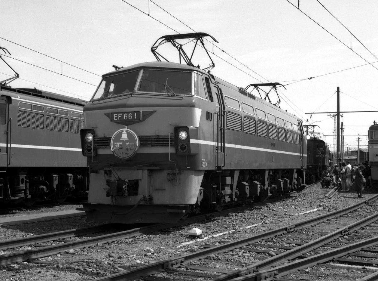 EF66シリーズで、今回はトップナンバーの1号機です。 ![]() ![]() 昭和53年頃 品川駅にて 画像が甘くてちょっとナンバーが見づらいんですが、EF66のトップナンバーです。 当時は東海道・山陽でしか見ることの出来なかったEF66。唯一近場で撮れるのが品川駅でした。汐留発着の貨物列車の牽引に当たっていました。 ![]() 昭和60年3月30日 高崎第二機関区にて 高崎第二機関区において公開があったときのものです。様々なカマのトップナンバー車が集められました。 「平和」のヘッドマークと言うのもビミョーです。 トップナンバー機は、現在もJR貨物が保存しています。 ![]() お気に入りの記事を「いいね!」で応援しよう