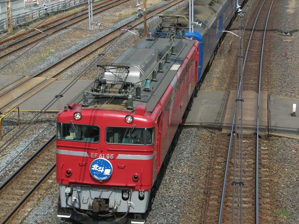 EF81牽引寝台特急「北斗星」シリーズで、今回はEF8196号機牽引の「北斗星」です。 「北斗星」牽引用のEF81は指定制となっており、車体には流れ星マークを塗装してあるのが特徴となっています。 ![]() 平成21年2月11日 2レ 特急「「北斗星」 ![]() 平成21年4月19日 2レ 特急「「北斗星」 北陸育ちのカマであったことで国鉄時代に写真はなく、地元で定番の「北斗星」と安中貨物しかありませんでした。 96号機は、昭和49年3月12日新製の日立製。94~100号機に属するグループは、昭和48年度の最終製造で、95~100号機が富山第二及び酒田に3両ずつ配属され、この96号機は富山第二機関区に配属となり、敦賀第二機関区を経て田端機関区にやってきました。 EF80廃車に伴って常磐線運用が中心になったことは他機と同様で、JR東日本に継承されて「北斗星」やJR貨物から委託された首都圏の貨物列車などで活躍しました。 EF510-500番台の導入に伴い、平成24年1月14日付で廃車となっています。 ![]() お気に入りの記事を「いいね!」で応援しよう
