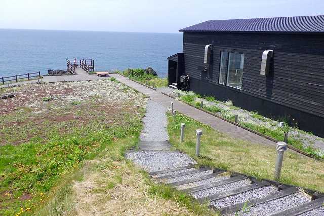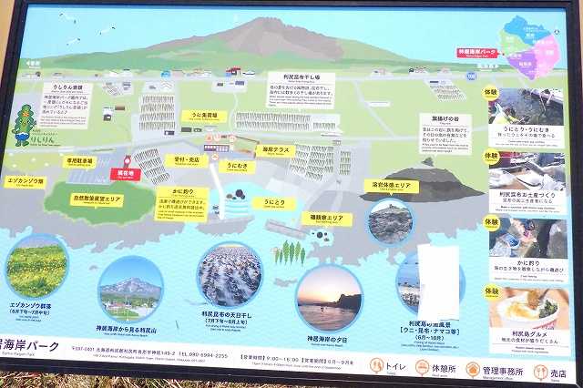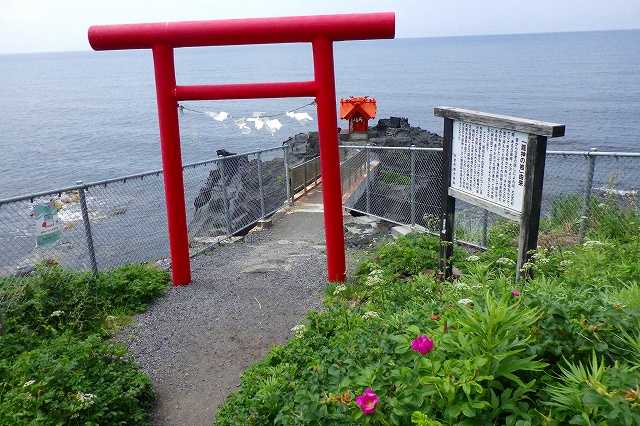 バイクを走らせ利尻島の西側まで来ました。 溶岩でできた岩の上に祠が建ち細い橋で行けるようになっています(P)。 ![]() 入口には鳥居があり「龍神の岩」を書かれた説明板があります(P)。 ![]() 利尻島を観光した人のブログにはよくこの神社がアップされています(P)。 ![]() 本当に小さな鳥居と神社ですが、大正時代の出来事から「龍神の岩」が信仰されるようになったようです。 海岸にぽつんとあるのが写真映えするのかもしれません。 10分ほど走ると「神居海岸パーク」です。 看板を見るとウニ剥きやカニ釣りなどいろいろ体験ができる公園のようです(P)。 ![]() 元々は漁師の船揚場だったようです(P)。 ![]() 私も子供の時から焼津という漁師町に住んでいますので見たことがある風景に似ています。 そこに体験施設を造り公園にした感じです(2P)。 ![]() ![]() 平日のためかシーズンオフなのか少し閑散としています。 溶岩でゴツゴツした岩場も見えます(P)。 ![]() 自然がいっぱいの利尻らしい風景ですが、人が見えないのは少しさみしいですね。
