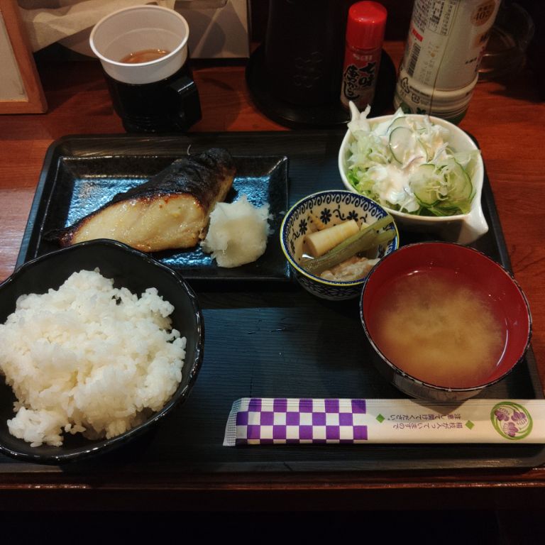 【食べた日:2025年(令和7年)4月11日(金)】 外回り中のランチ ※ 焼魚(ぎんだら西京焼)定食(800円) 〈居酒屋 凛(埼玉県越谷市弥十郎158-1)〉