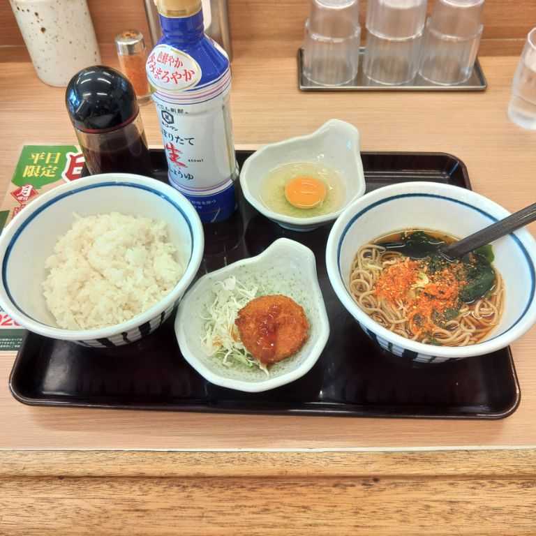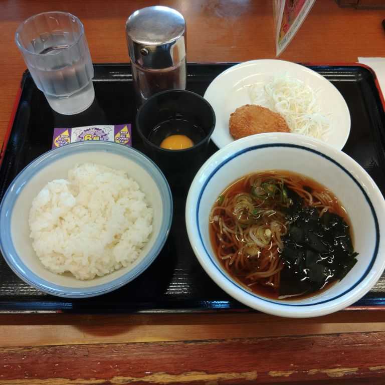 【食べた日:2025年(令和7年)8月11日(月・山の日)】 山の日特別企画 来店ポイント3倍 ※ 玉子かけごはん 温かいそば(370円)