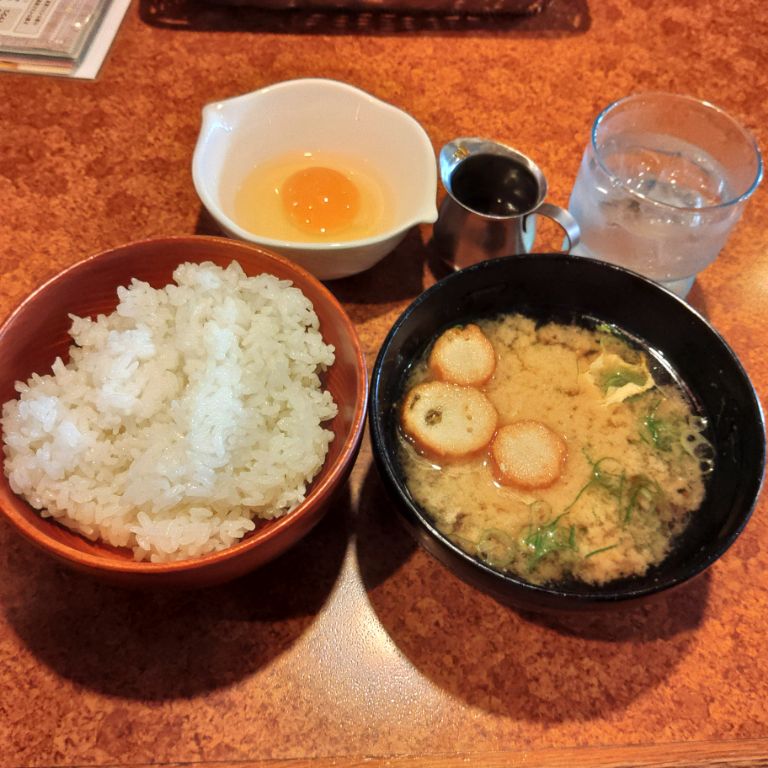 【食べた日:2025年(令和7年)10月25日(土)】 クーポン使って50円引き でも、味噌汁の具がほとんどありませんでした。 メニュー写真と大違い。こんなものなのかな。 ※ たまかけ朝食 ごはんミニ(240円←290円)