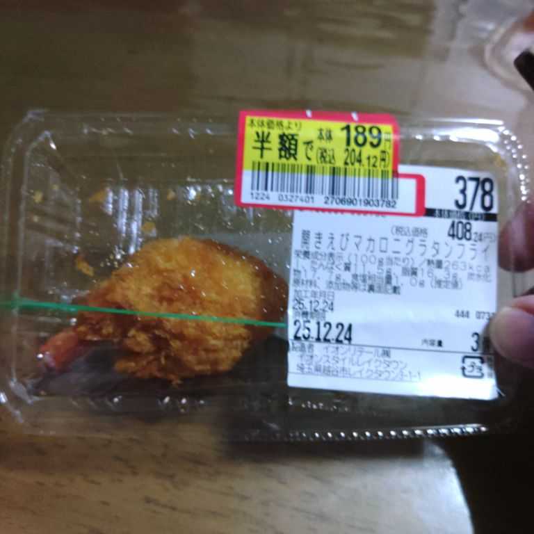 【食べた日:2025年(令和7年)12月25日(木)】 ※ 開きえびマカロニグラタンフライ(204円←408円)
