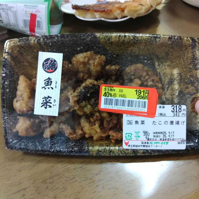【食べた日:2025年(令和7年)9月17日(水)】 今日のおつまみ ※ 魚菜 たこの唐揚げ(206円←343円)