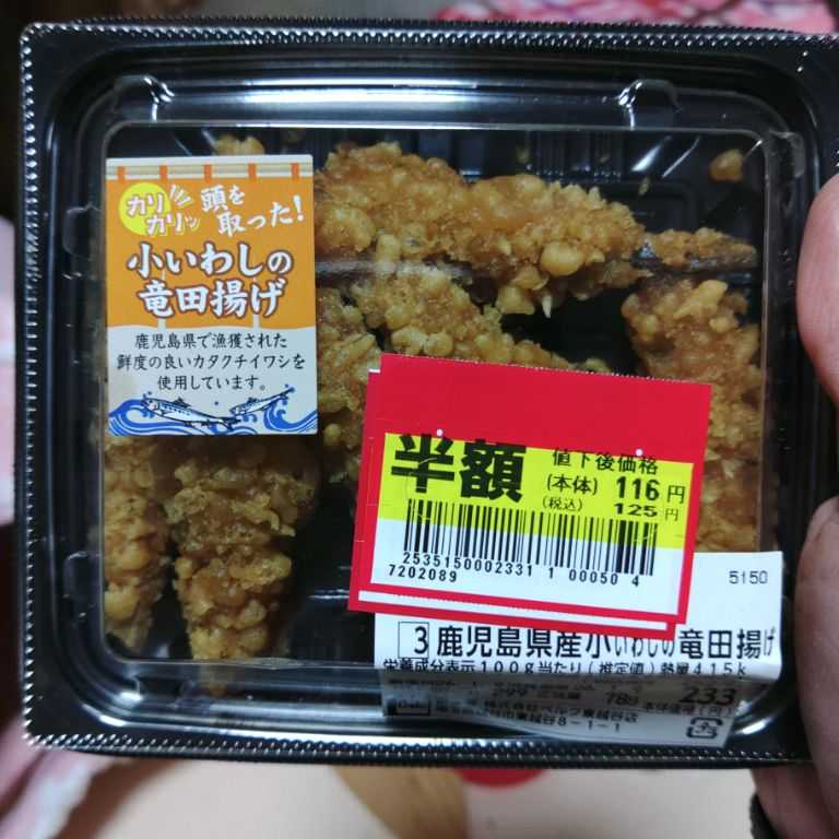 【食べた日:2026年(令和8年)1月9日(金)】 ※ 鹿児島県産小いわしの竜田揚げ(125円←250円)