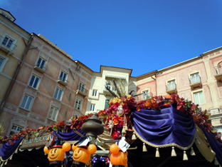 数日前から「今日あたり台風が関東地方を直撃するかもしれない」という情報を得てはいましたが、最近なぜかものすごく取り難くなってしまったベッラヴィスタラウンジの昼食時間帯のPS予約を幸運にも取ることができていて それを他の休日に変更するのも今からでは難しそうだったので、昼食を終えたらすぐ帰宅するつもりで出かけてきました。舞浜に到着し、ディズニーシーのゲートを入ったのは9:40頃でした。季節はずれの蒸し暑さはあるものの 地上では強い風が吹くこともなく、見上げれば空は青空。まだお天気が崩れる気配がまったく感じられなかったので、私達は1回目(11:30~)の「ハロウィーン・デイドリーム」をどこか良い場所で観れるものなら観たいと思い、ミラコスタ通りを抜けて広場ピアッツァトポリーノへ行ってみました。ピアッツァトポリーノに出てみると、あちこちに立つ街灯に飾り付けられているはずの紫色の旗がそれぞれ小さくたたまれて紐で固定されていて、既にディズニーシーでは台風を迎え撃つ準備は万端のようでした。(そういえばゲート前のエントランスでも 今日は道路や鉄道などの交通情報を知らせるアナウンスが繰り返し流れていました。)鑑賞エリアは、この時点(9:40過ぎ頃)で座り観の前方エリアは半分以上が埋まり、ショーエリア沿いの立ち見の最前列も中央寄りは全て埋まっていました。が、座り観後方ブロックの通路沿い最前列や その後ろの立ち見(ショーエリアに面していない立ち見)の側面ならば最前列にあたる部分にまだ少しの空きがありました。ちょっと迷いましたが、私達は今日のところは「立ち見」を選択しました。私達が観賞場所を決定して落ち着くとすぐに、目の前のショーエリアにはマリタイムバンドがやってきました。いつもの御馴染みの曲に加えて「ハロウィーン・デイドリーム」のショー音楽などの演奏も披露してくださったのですが、とても素晴らしかったですよ~。(ハロウィーン・デイドリームの曲ってこんなに素敵だったっけ・・って思っちゃいましたよ!)ピアッツァトポリーノは日ごろから人気のある鑑賞エリアですが、今日は台風接近の影響もあって埋まるスピードがやや鈍かったようで、座り観がすべて埋まったのは10:30頃、私達の後ろに立ち見の2列目以降ができ始めたのも同じくらいのタイミングでした。「立ち見場所の後方が混雑して通路確保が難しくなってきたので立ち上がるように・・」とのアナウンスがあったのも、ショー開始の15分前でした。さて、ピアッツァトポリーノで観た「ハロウィーン・デイドリーム」。その印象は、オチェーアノのテラスから観た時ともカフェポルトフィーノのテラス前あたりで観た時とも、当たり前ですがやはり異なりました。このエリアにまずやってくるのは、綺麗なグリーンの旗を掲げ打楽器を携えた一団とチップ&デールとクラリス。その後ドナルド&デイジー率いる集団がやってきたかと思うと、わりとすぐにスケルトン達も登場してきます。スケルトンのダンスもこれだけ↓↓人数(?)が多いと壮観・・ というか、五線の上に並んだ音符のダンスみたいで可愛さすら感じましたよ~。ステージとして使われる場所が広く出演者が多いので、諍いの時も和解の時もあちこちで色々な場面が展開していて見る方としては忙しい・・・フィナーレ前の「旗」登場もとても美しく見え、旗好きの私としては嬉しい限りでした。ショー終了後はいったんディズニーシーを離れ、車を停めていたイクスピアリへ戻りました。その後13:30過ぎにホテルミラコスタに到着、建物1階部分にあたる屋内駐車場に車を停めました。台風に備えて帰宅を早めた方が多かったのか、はたまたタイミングが良かったのか、こちらの駐車場もなんだか普段の日曜日のこの時間よりも空きが多かったようです。PS予約時刻まではまだ時間があったので「15分くらいは待つかな~・・」という覚悟でベッラヴィスタラウンジ店頭へ行ってみると 意外なことにすぐに案内してくださったので、私達はそのまま本日の昼食タイムに入りました。席に着いてすぐに気がついたのは、テーブルの上にセットされていたこの琥珀色のグラス。よくよく考えたら、朝食以外の時間帯にこちらに伺ったのは実に5ヶ月ぶり。長くご無沙汰していたその間に、お水のグラスがお隣オチェーアノと同じ ドイツ「Villeroy & Boch」社製の物(色違いですが)に替えられていました。(オチェーアノのグラスは こちら )グラスを覗き込むと底にブランド銘が・・席について店内を見回して驚いたのは、思っていたよりも空席が多いこと。 やはり台風の影響で急なキャンセルなども発生していたのかもしれませんね。お料理の方は、夫はプリフィックスのベッラヴィスタランチコースを、私は“ディズニーハロウィーン”ランチコースをメインをお肉にしてお願いしました。今回のイベントのコースは、「強烈なイタリアン」という風合いがやや薄れていて、なんだか不思議と親し
