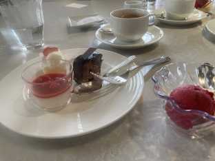 ![]() ここ数年は恒例のこととなっている オチェーアノ・ブッフェでの「二人きり新年会」をするために 午前中から出かけてきました。 舞浜に到着してホテルミラコスタ駐車場に車をとめ 館内に向かったのは11:00過ぎ頃。 首都圏では一昨日1月2日の夕方から夜にかけて結構な降雪があったのですが、ホテルミラコスタのエントランス周辺にもまだ溶けきっていない雪が残っていて、いつも眺めているこの場所もちょっと違った景色になっていました。 ![]() 宴会場側のエントランスを入って廊下を行くと。 ![]() 窓から見える植栽にも雪が残っていたので 思わずカメラに収めてしまいましたよ~ ![]() (首都圏住人にとっては「雪」は珍しいものなのです。雪国の方 どうか笑わないでくださいね。) オチェーアノ店頭に行ったのは11:15くらいでした。 すぐに通していただいたウェイティングエリアには既に数組のゲストがいらっしゃり「皆さん早いなあ…」とちょっと思いました。 11:20を過ぎるとランチタイムのオープンにあたってキャストさんからご挨拶があり、 11:30からディズニーシーのパーク内で行われるお正月のグリーティングをテラスからご覧いただけます との説明がありました。 実はきょうは私、オチェーアノが今年のお正月グリーティングのためにテラスを開放しているのかどうかも確認せずに出かけて来ていたので、そのお話を聞いて「観られるんだー 嬉しいな~」と素直に思ってしまいました。 (実際 何年か前まではオチェーアノがテラスを開放していたのは「ハーバーショー」開催時のみで、10分足らずの「グリーティング」が行われる際は外に出られませんでしたからね~) 数分後、何組目かに名前を呼ばれてダイニングエリアのテーブルまで案内していただく途中でブッフェカウンターをふと見ると、お正月仕様のデコレーションが目に飛び込んできました。 ![]() オチェーアノのブッフェの名物「ティラミス」も当然まだ手付かずで綺麗なままだったので「今のうちに!」と撮影させていただきましたよ! ![]() 案内していただけた席は本日はパールのお部屋のテーブルで、席に着くとキャストさんはお料理やドリンクの説明もそこそこに「…もう既にテラスの扉も開けられていますのでお外へどうぞ!」とすすめてくださいました。 なので私達はおすすめに従うことにし キャストさんに案内していただいて奥のケルプのお部屋のテラスに出ました。 と。 …まあ! なんていいお天気! ![]() なんてすばらしい青空でしょう。 本当に、穏やかで晴れやかな良いお正月のメディテレーニアンハーバーです。 テラスに出て間もなく時刻は11:30になり ハーバー一帯にニューイヤーズ・グリーティングの開始を知らせる和太鼓の音が響き渡るころ、私はケルプ側テラスを見渡してみましたが この時点でこの場にいらっしゃるゲストは私達を含めても10名たらずといったところで、本日この回のグリーティングは非常にゆったり眺められそうでしたよ。 水道橋をくぐってハーバーに出てきた船には「2026」の大きなロゴと「Happy New Year!」のメッセージ。 ![]() 乗っているのは昨年と同じメンバーでしょうか。 ![]() ![]() 船は一気に水域の中央までやってきて、その後はザンビーニブラザーズリストランテ前、ピアッツアトポリーノ桟橋前、リドアイルの三か所で停止してゲストにお正月のご挨拶をしてくれましたよ。 ![]() オチェーアノのケルプ側テラスの前を船が通過していく時は、今年もデイジーの「お着物自慢」をきくことができました。 ![]() ![]() ご挨拶を終えたキャラクター達をのせた船はハーバー中央に一度戻り、その後もう一度水際を大きく一周してから水域を去っていきました。 ![]() ![]() ばいばーいミッキー。 今年も元気でね! ![]() 船がスチーマーラインの乗り場の陰に消えて行ってからも音楽が終わるまでテラスに留まり、私達は店内に戻りました。 内容は昨年とほぼ同じ「Happy New Year!」と「おめでとう!」がただただ繰り返される6~7分ほどの短いリーティングでしたけれど、やはりこれは「縁起もの」ですからねー 観られて良かったです。 その後テーブルに戻り、シャンパーニュ「二コラフィアット・レゼルヴ・エクスクルーシヴ・ブリュット」のグラスも私の方だけお願いして、本格的にお食事を始めました。 ![]() ローストビーフのカッティングサービスのコーナーには常にホースラディッシュも用意してくださるようになって、私はたいへん嬉しいです。 (ありがとうございます。) ![]() デザート前にはコーヒーも追加でお願いしました。 ケーキはあまり食べられなかったけれど、復活を熱望していたジェラートが戻ってきて 最近はレギュラーメニューに定着しているようなので こちらも嬉しい限りです。 ![]() 13:00を過ぎた頃にはパーク内ハーバーをダッフィーの船が通過するとのご案内があり、店内の皆さんの多くがお見送りのためにテラスへ出て行ってしまわれたので、その間にパンコーナーやデザートコーナーのお