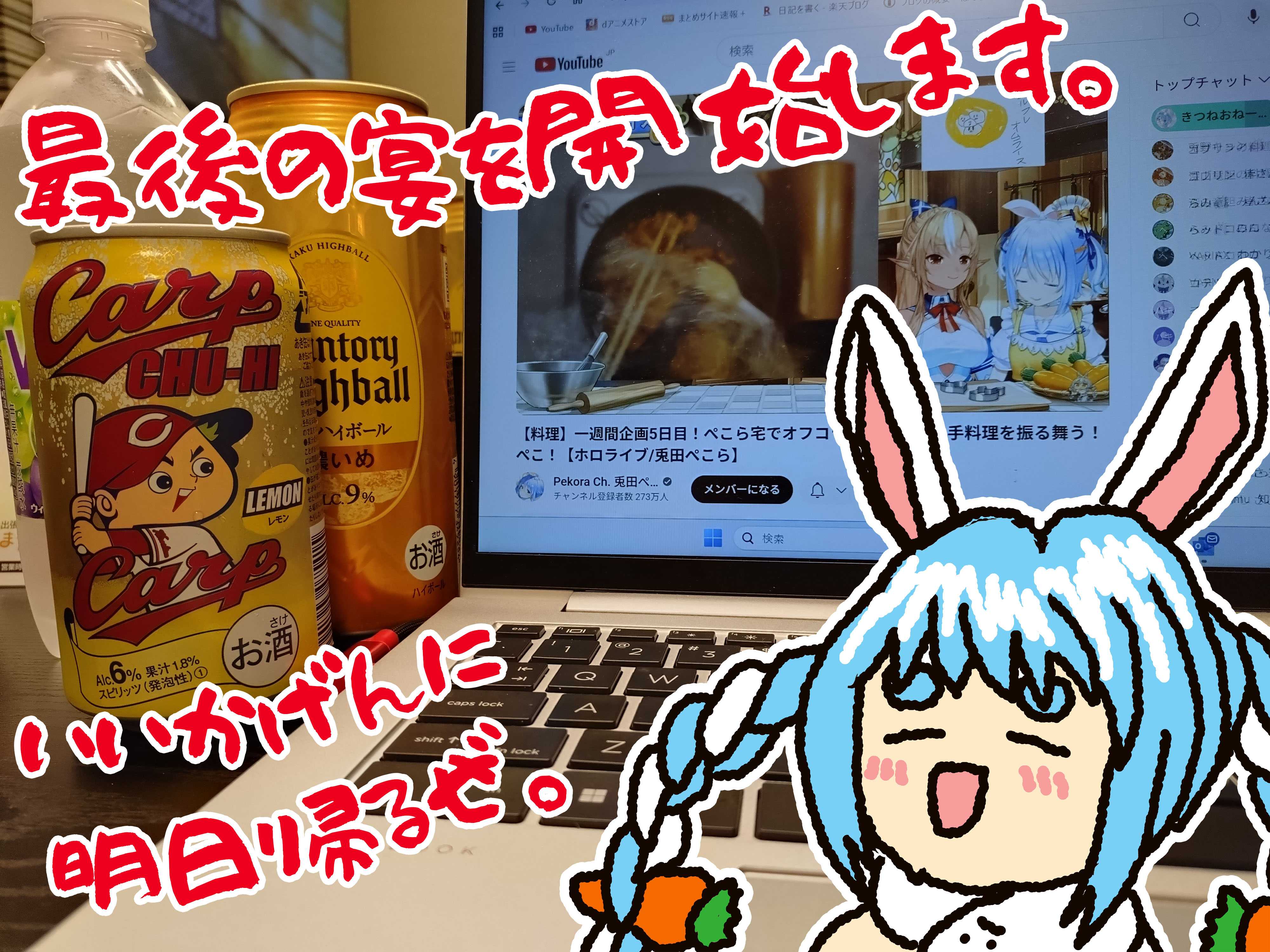 どうも。 もはや旅人です。 昨日まで新潟にいたのに今広島県にいるじゃけぇ。 まじでそろそろ帰らなければ。 お財布の中身がヤヴぁい。 なんとAMでお仕事終わりました。 頑張りました。 このアイキャッチ使い勝手がいい。 もう一パターン作ろうかな。 お昼ご飯に行きます。 もんごい亭@広島駅前店 に来ました。 前から来たかった。 おいしそう。 初訪問なので左上の法則発動です。 もんごいらーめんとチャーハンセットを頼みます。 1230円です。強気に行きます。 フルアーマーZZくらい強気です。 卓上調味料です。 コショーしか使わなかった。 GCPはガーリックチリペッパーの略だそうです。 なんだ?DAIGOでもいるのか? 何でもかんでも略しちゃいかん。 ONMです。Omizu Nonde Machimasu。 チャーハンが来ました。 チャーハンうまい。 ただ、私のお腹はあまり減っていないのが懸念点です。 しかし頼んじゃう。 漢には避けられない戦いもあるのです。 うまかった。 余すところなくご覧あれ。 最近チャーハン猫にハマっている。かわいい。 もんごいらーめんも来ました。 おいしそう。うひょー。 もんごいおいしそう。 スープを飲みます。 なんか豚とか鶏とか魚介のスープがなんかこう・・・知らん。うまい。 この細い麵が好きです。 最近はこってり以外も好き。 そういうらーめんはこういう麵が合う気がする。 おいすぃ。 最後にデザート食べます。 無論うまい。 あんまりお腹減ってなかったけど完食完飲しました。 この繰り返しが健康を蝕んでいくのでしょう。 助けてくれ。 黒ウーロン茶。(飲んだことはない) うまかったです。 大満足。 ホテルに向かいます。 アパホテルです。 楽天トラベルで予約しました。なんかくれ。三木谷。 アパホテル〈広島駅前大橋〉 でけぇ。 いいお部屋です。 さすアパ。 全裸でくつろぎます。 社長に挨拶してお水を飲みます。 お水をありがとう。 感謝のお手紙(渾身の絵)を奉納します。 いつも通り 広島乃風@アパホテル広島駅前大橋店 に行きます。 いつものチチヤスハイボールを頼みます。 至高です。 チチくります。 いつも通り炙り葱マヨをオーダーしました。 至高です。 海原雄山と喪服の息子が難癖つけてきたらデンプシーロールで殴ります。 満足したのでホテルでまったりします。 さあ、明日こそ帰ります。 最後の宴です。 レッツパーリナイ。 【限定販売】ねんどろいど ホロライブプロダクション 兎田ぺこら 私服衣装Ver.[グッドスマイルカンパニー]【送料無料】《10月予約》