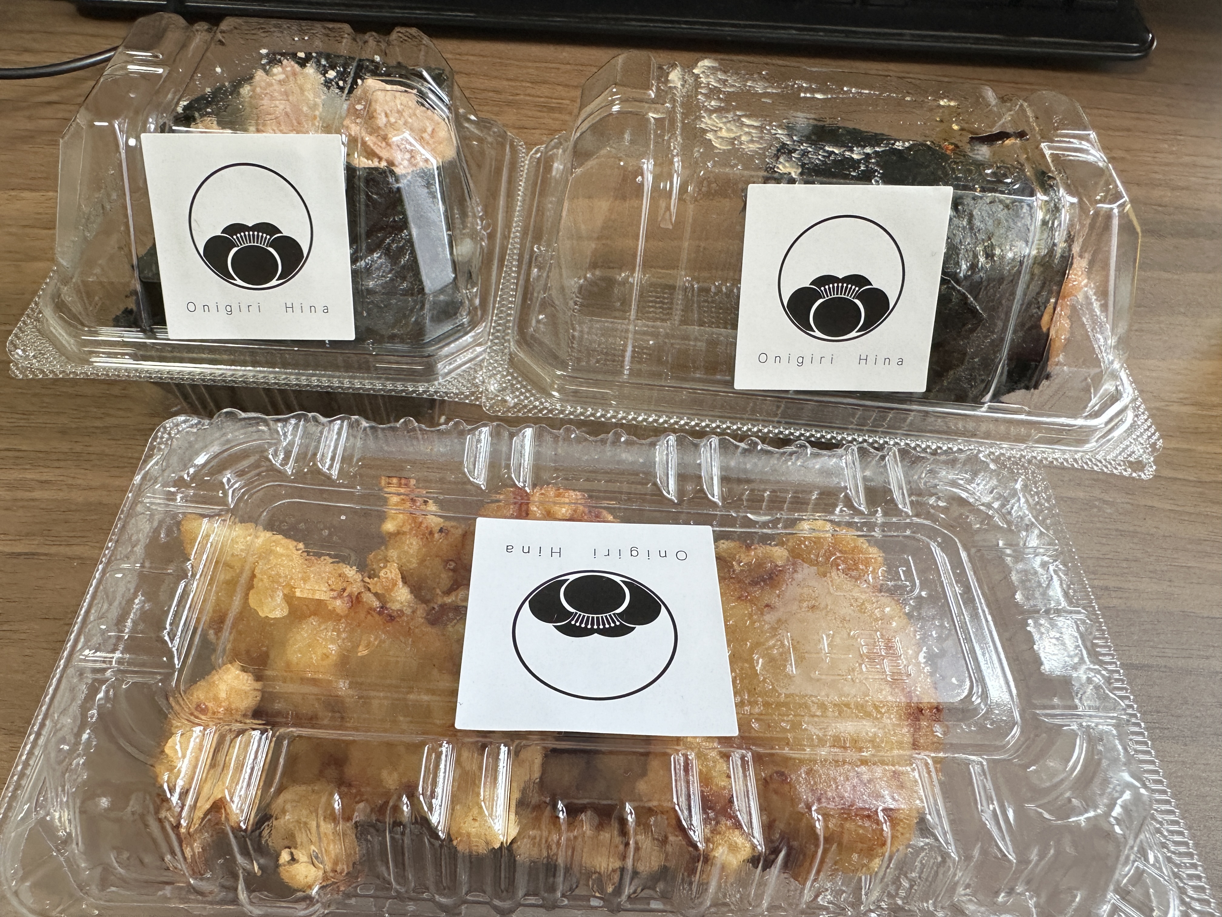 今日のお昼は久しぶりの「おにぎり ひな」にした。焼きたらこと梅のおにぎりと鶏のからあげ3個。ここの、たらこおにぎり好きなんだ唐揚げは、1個90円で一個単位で売っていて、食べたいだけ買えるから良いんだよねぇ。おにぎりもからあげも美味しかった。追おにぎりの高菜は、味が薄くて、まぁまぁってとこだから、やめた方が良いと思う。