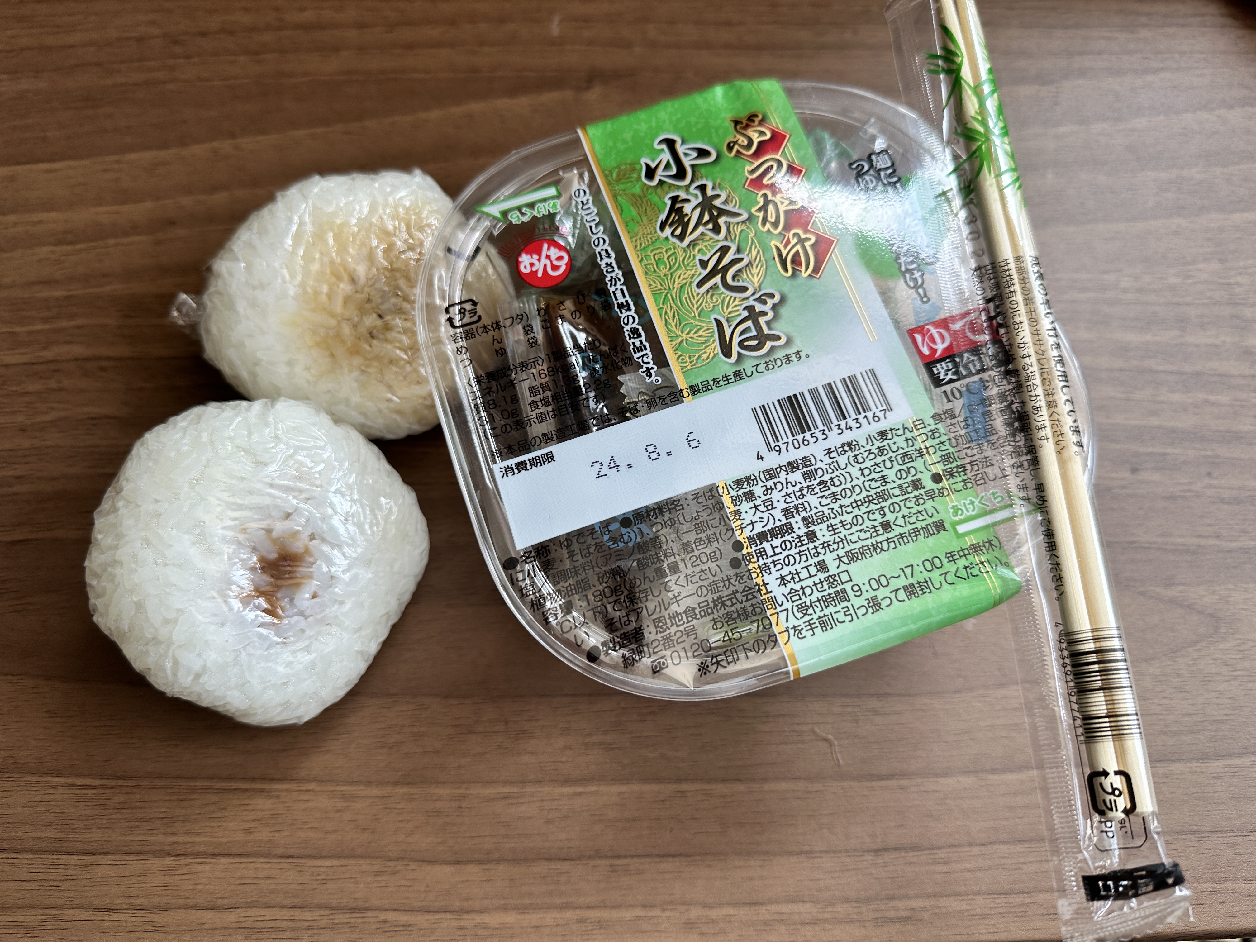 家で作ってもらった「梅」と「おかか」のおにぎりお店でなくても美味しい😋もう一つは、いつものおそば❣️美味しかった