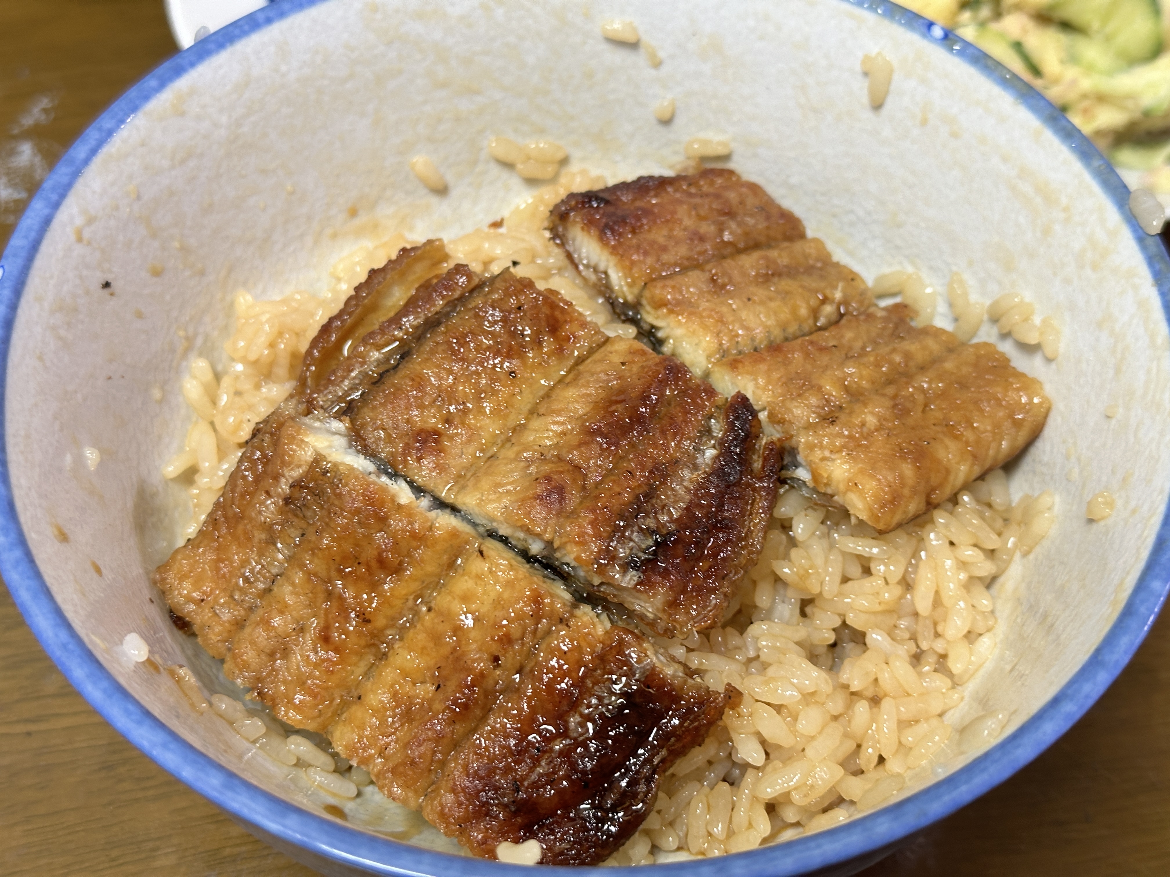 今日は土用の丑、鰻丼食べた久しぶりで美味しかった‼️先に、ご飯にタレをかけて、かき混ぜてから食べたよ。味がご飯によく染み込んで美味しかった