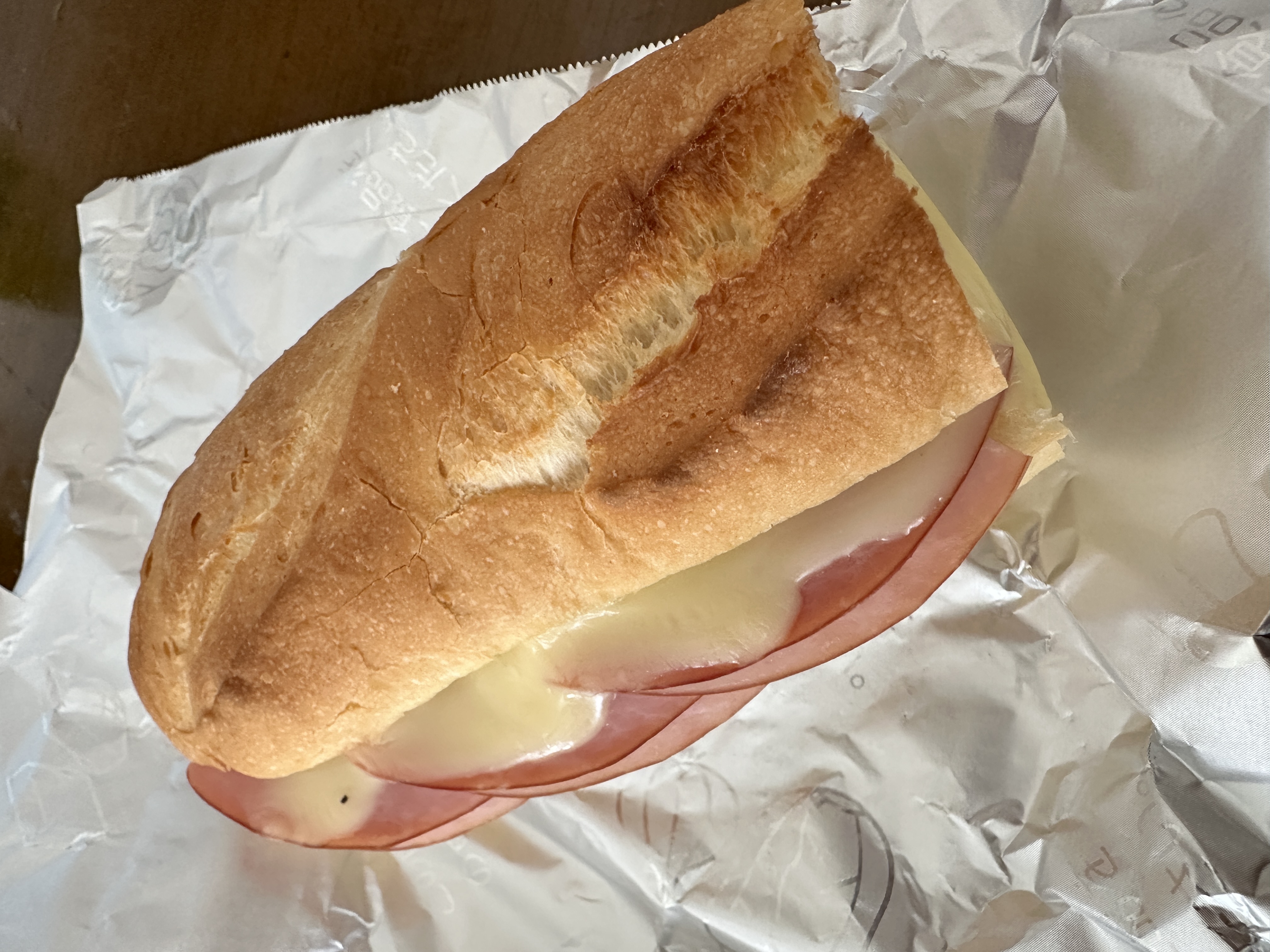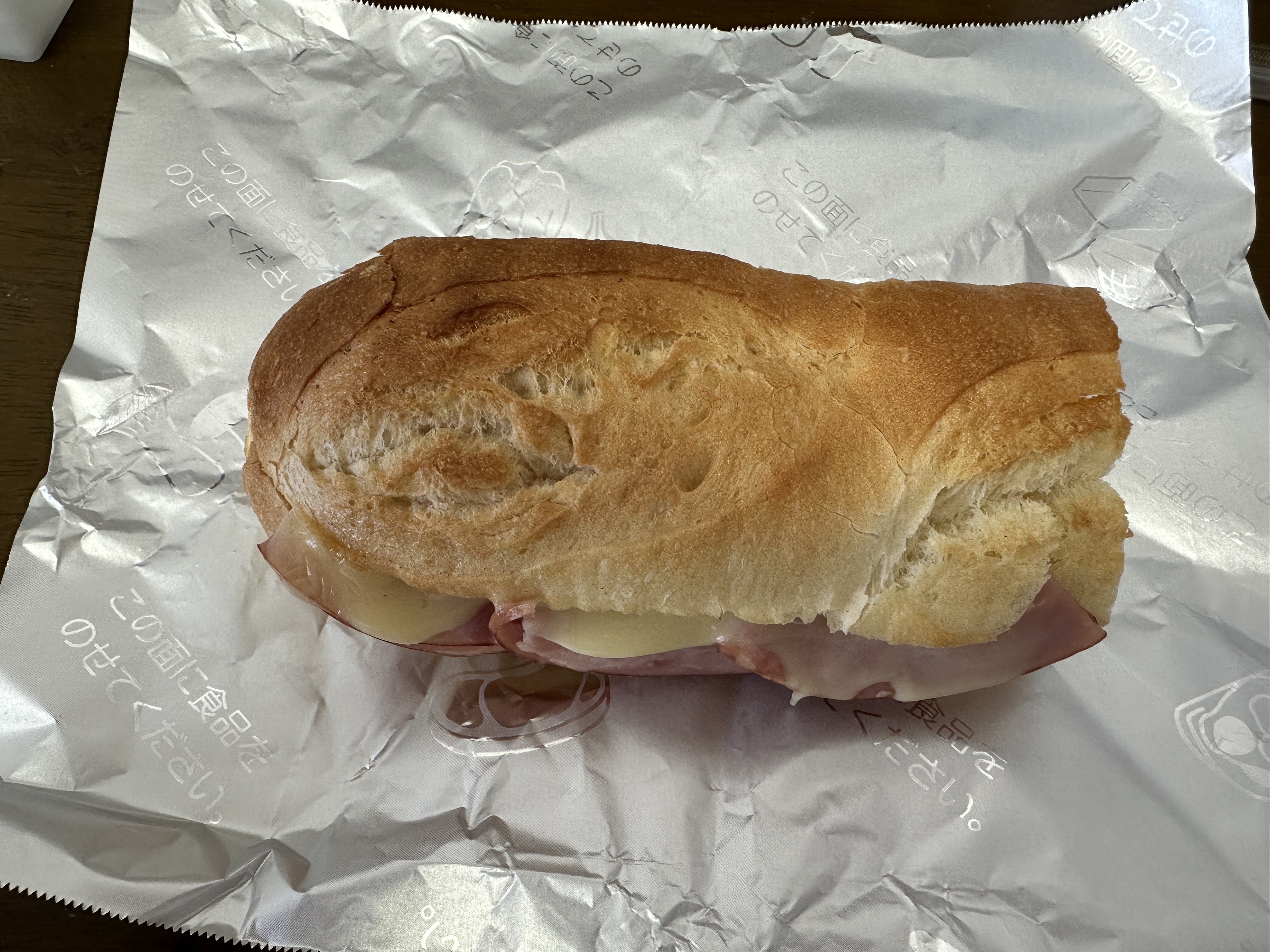 セブンイレブンの(小麦の香り広がる バスケッドサンド ボンレスハム&チーズ)小麦の香りって全然分からんwあっさりしていて美味しいよ、コスト削減⁉️ パンが半分やし❗️最近のセブンイレブンはこ言う事よくするね。今日も、元気に頑張るぞ