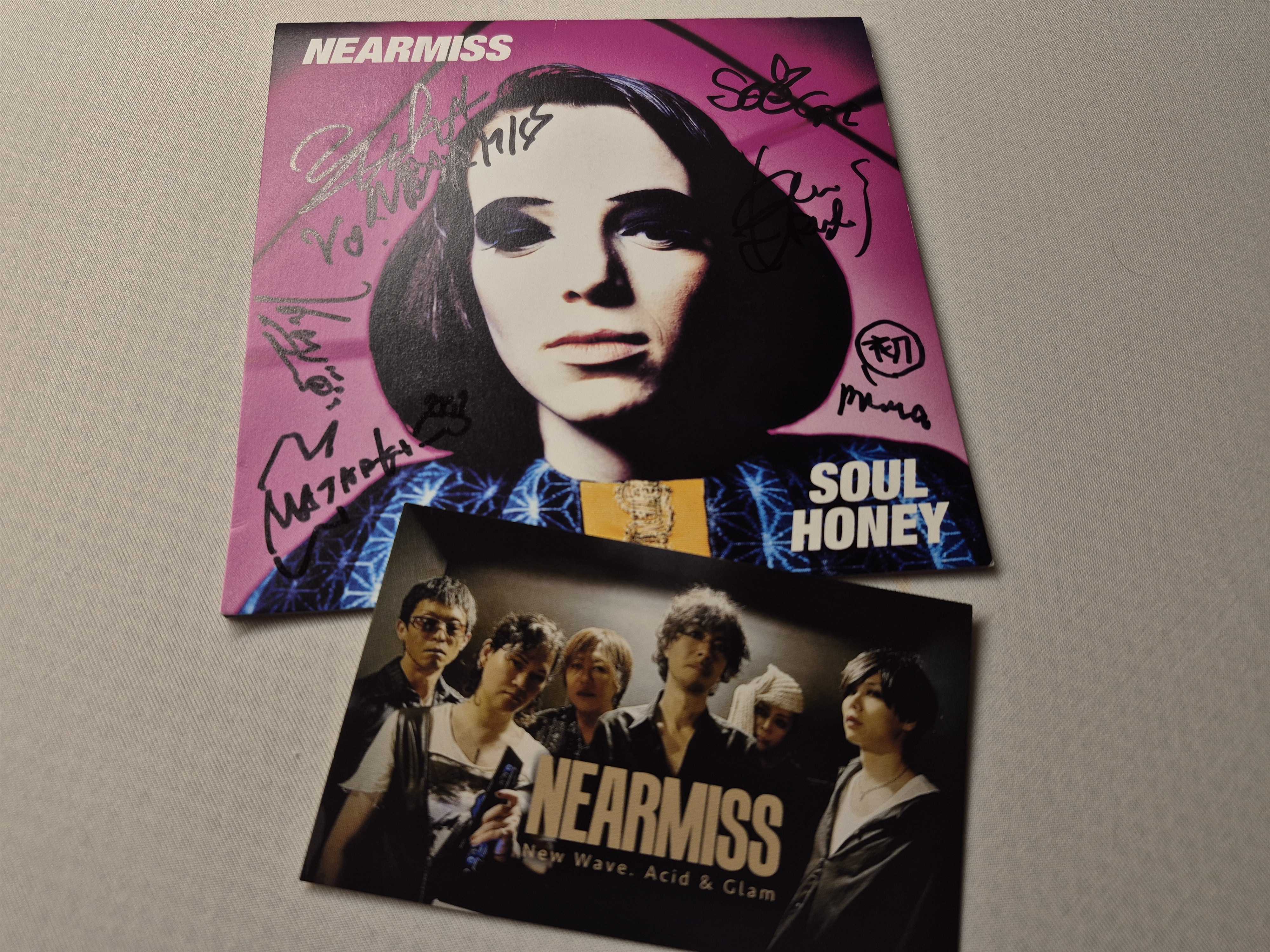 ![]() 11月1日(土)、横浜の7th avenueでのライヴに行ってきました。ちょっと前にブログで触れた、NEARMISSが出演するイベントです。これは7th avenueの40周年を記念するイベントで、the superlative degreeが主宰したものでした。FLOAT.とSEX MACHINEGUNS、そしてthe suplerlative degreeも出演します。 久しぶりに関内に行きました。かつてはよく野球を観に行った横浜スタジアムを見ながら懐かしさに浸りつつ、やっとNEARMISSを見られるドキドキで胸を高鳴らせながら会場へと急ぎます。 ![]() NEARMISSの出番は一番目で、開場が16時30分だったものですから、午前中仕事だった私は、退勤後ものすごい勢いで電車に飛び乗ってやって来たせいでもう疲れている(笑) 邦楽のライヴに行くのも久しぶりだし、邦楽ライヴひとりで参加はたぶん初めてだったので、勝手にアウェイ感を覚える私。でしたが、だんだんと集まって来る黒っぽい服装のファンの方たちを見ていると、ひとりでに嬉しくなりました。覚えてる、この感じ!懐かしいぞ! チケットはソールドアウトで、どんどんお客さんが入ってきます。私は右側の4列目くらいに陣取ることができました。 さて、17時少し回ったところでライトが落ち、いよいよNEARMISS登場です! わーSoeさんだ、MASAAKIさんだ、KouさんにMIWAさん!そしてこの日のドラムスKenさん!Xでお話させてもらってる方たちがステージにいる、めっちゃ興奮します。 そしてゆっくりと出てきたYU-KIさん。全身ブラックの装いでめちゃくちゃカッコイイ…! 冒頭は「Touch Me」。拡声器ごしのYU-KIさんの声がカッコ良すぎて、もうすでにここで私はノックアウトされてます。「やばい、超カッコイイ」とひたすら呟く挙動不審者がひとり。私です。 次はシングルにもなってる「LOVE TO ME」。ちょっと横揺れしたくなるグルーヴがセクシーで、私がNEARMISS好きな理由がこれです。グラムっぽさ全開なんです。 YU-KIさんが「たぶんぼくらのこと知ってる人たち少ないでしょうが…」と言ってましたが、ファンの人!と呼ばれたので、めっちゃ手を挙げました。笑 「Jungle Freaks」を経ての「Darlin’」はもう最高。Darlin’が入ってるSTRYKESが大好きなので、この印象的なギターが始まると、テンションが一気に上がります(もうとっくに上がってるけど)。 そしてやっぱり「RED HOT LOVE」は外せない!若かりしNEARMISSもカッコ良かったですが、いまはそれを上回りますね。家に帰って来て昔の映像をyoutubeで見てますが、私はいまが断然好み! 最後の曲、と始まったのが「Beautiful Alone」で、私は今日NEARMISSを見られた幸せを噛み締めました。Kouさんがアレンジしたということで、アルバムで聴くのとまた違う印象で、さらにじわじわと沁みるナンバーになっていました。 それに、タイトルが良いじゃないですか。Strangeloveにも同じタイトルの曲があって、勝手に一度で二度美味しいと思いながら見ていました。 Setlist 1. Touch Me 2. LOVE TO ME 3. Jungle Freaks 4. Darlin' 5. RED HOT LOVE 6. beautiful alone ![]() 出番が終わった後、フロアに出てきてくれた皆さんとお話できる機会がありました。Xのおかげで皆さんに認識してもらえてて、終始感激しどおし。Suede仲間と勝手に決めているYU-KIさんと「Brett超カッコいいよね~」と話したことは鮮明に覚えています。笑 MASAAKIさん本当にほんわかしていて優しいし、Kouさんめっちゃ可愛いし、MIWAさんの初めてのサインもらえたし(笑)、Kenさんも「俺!?俺でいいの!?」とサイン書いてくれて、SoeさんもXのとおりの気さくで楽しいお喋りをしてくれて、この時間が楽しすぎました。 皆さん全員にサインをいただき、Soeさん作成のNEARMISS名刺(プレミア)もいただき、いろんな話もできたし、こういう状態を有頂天というのだなと帰りの電車に乗りながら噛み締めました。Xやってて本当によかったと強くそう思いました。 新曲も作ってらっしゃるようですし、次のライヴがあったらまた駆け付けたいと思います! SEX MACHINEGUNS上手すぎて面白すぎて最高でした♡ かつてV系一辺倒だったころの記憶が一気によみがえり、ファミレスボンバーとかみかんのうたとかBURNとか、けっこう思い出しました。笑 あと、the superlative degreeの章人さんが何回か出てきて、後ろの方からステージをじっと見てたんですが、オーラすごくて何も声かけられなかったです。いい匂いがしました。笑 お気に入りの記事を「いいね!」で応援しよう