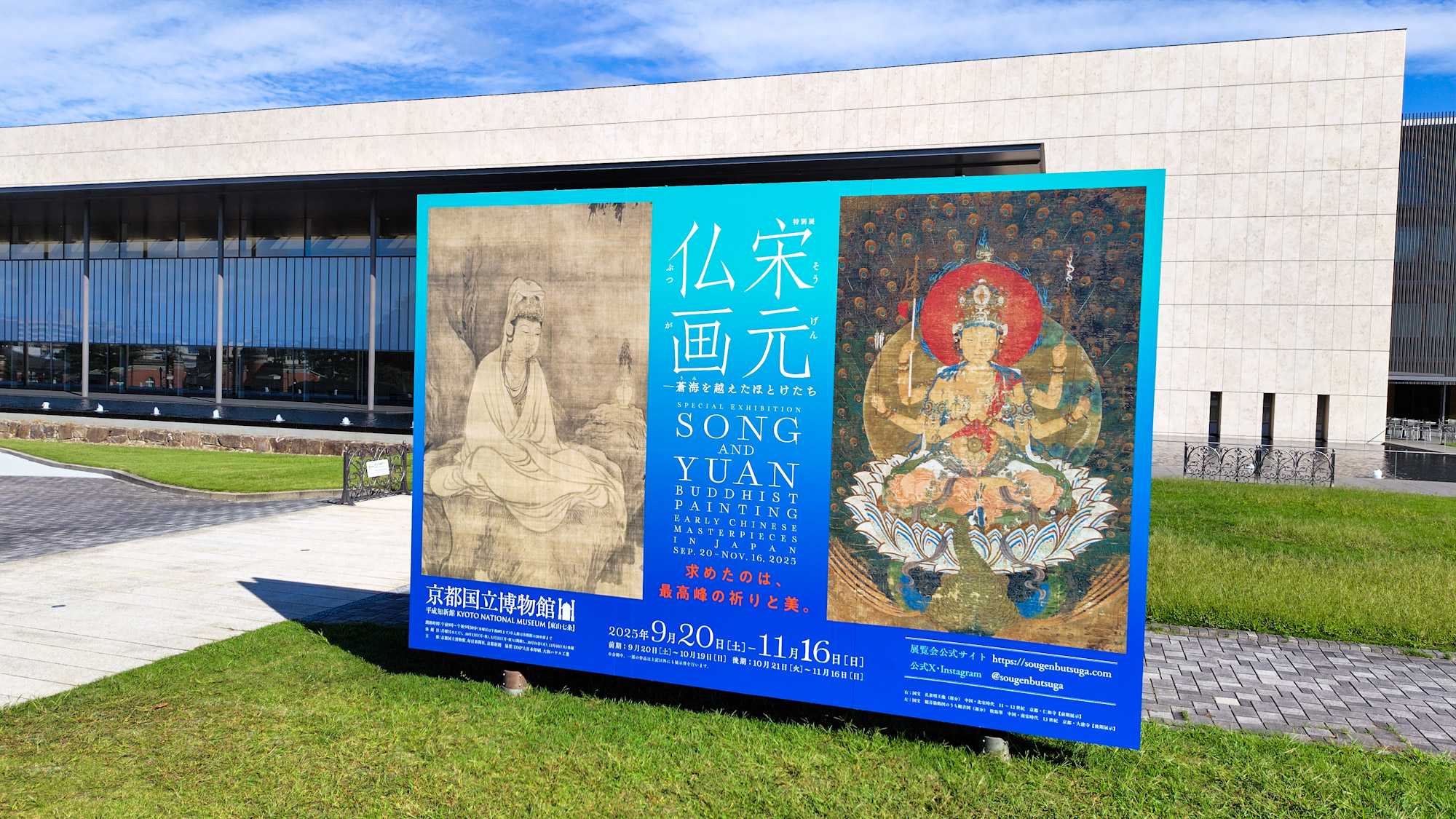 昨日は京博で特別展「宋元仏画−蒼海を越えたほとけたち」の前期。平日だから少ないとはいえ、開館15分前は7人ほど、開館時間でも20人弱かな。前の7人のうちチケット等を持ってたのは2人だけ。そのままの状態なので館内も鑑賞に最適、まぁテーマが一般受けしないのかも。